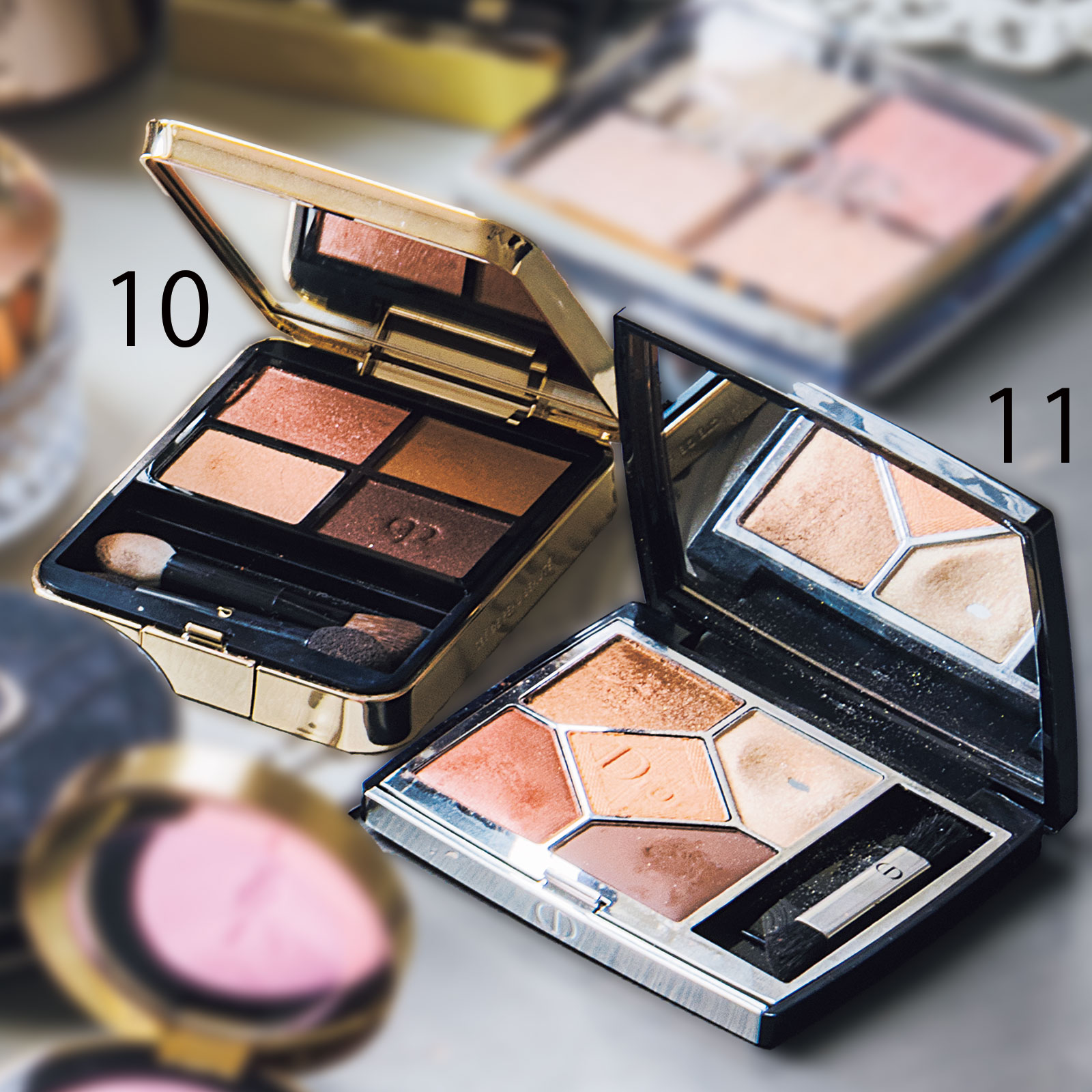 10大人顔にしたいときに。落ち着いた色味のクレポのオンブルクルールクアドリ 07。11立体感のある目元になって重宝。ディオールショウ サンク クルール439。