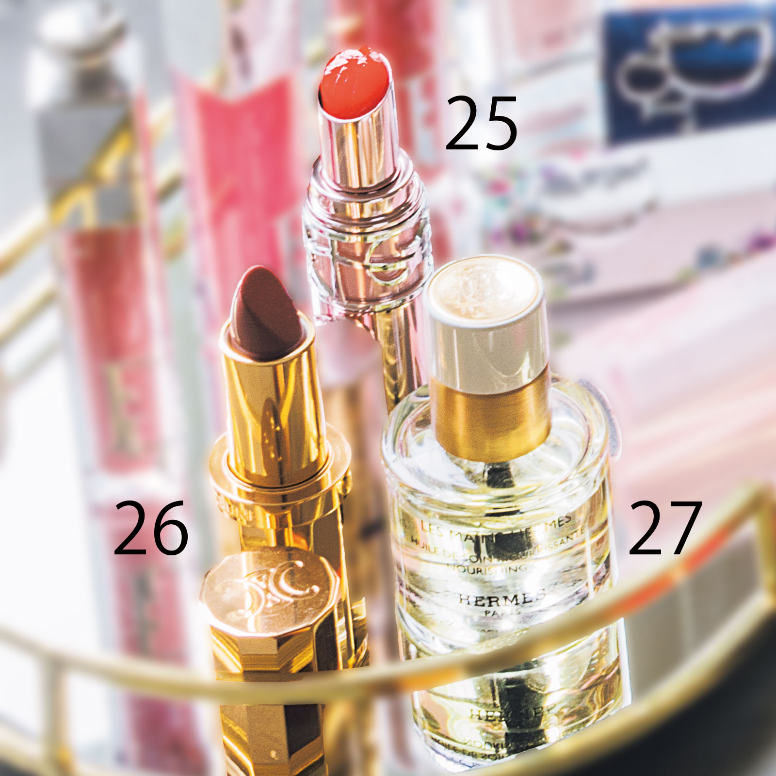 25保湿のレベルがスゴイ! ほのかに色づくYSL ラブシャイン キャンディ グロウ バーム 9B。26他にはない気品が漂う。大人の唇になるセリーヌ ル ルージュ・セリーヌ。 27指先まで保湿。100%天然オイルのエルメス レ・マン・エルメス ネイル&キューティクルオイル。
