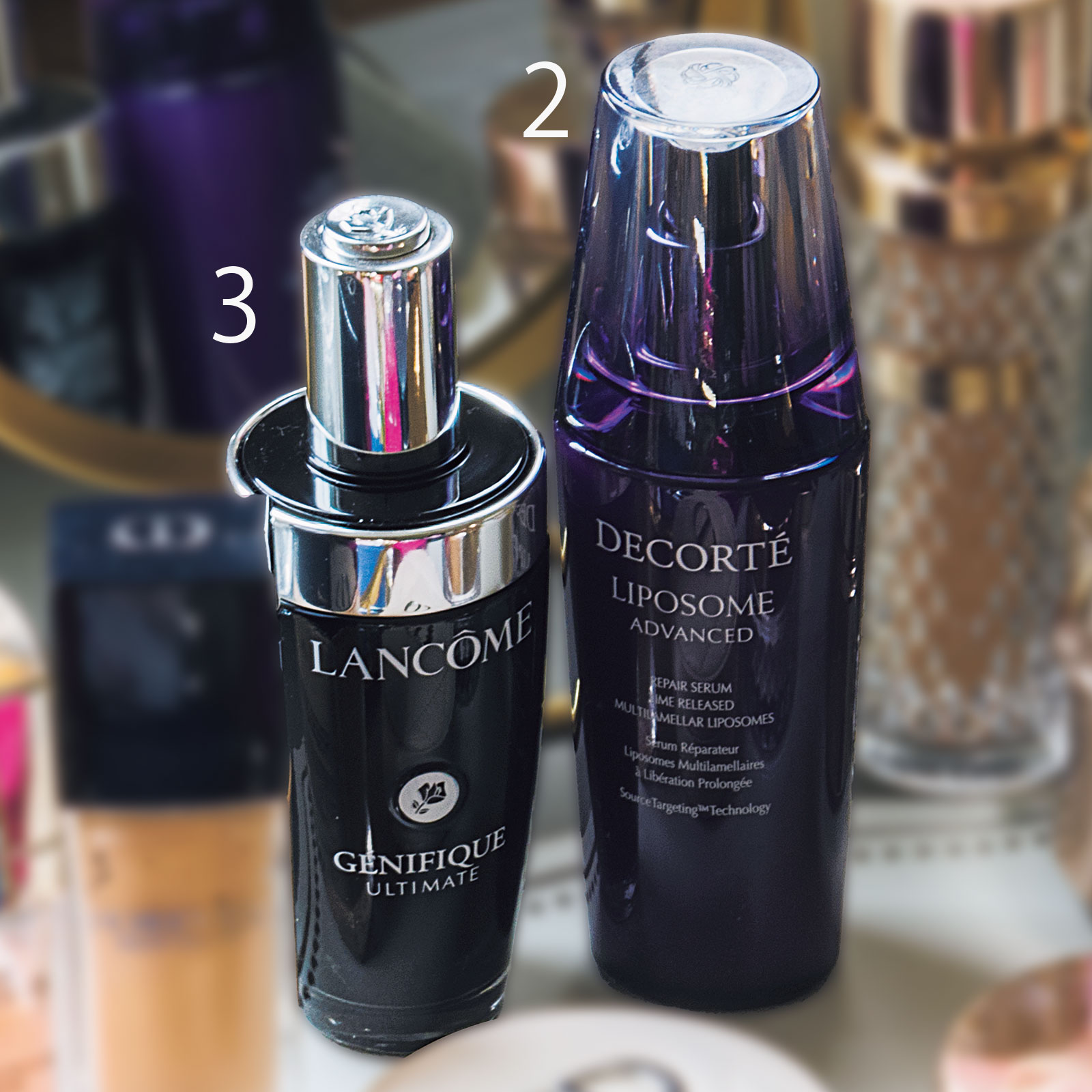 2肌を全方位から立て直し。コスデコのリポソーム アドバンスト リペアセラムは洗顔後に投入。3回復力が段違い。ランコム ジェニフィック アルティメ セラムで肌がゆらがなくなりました。