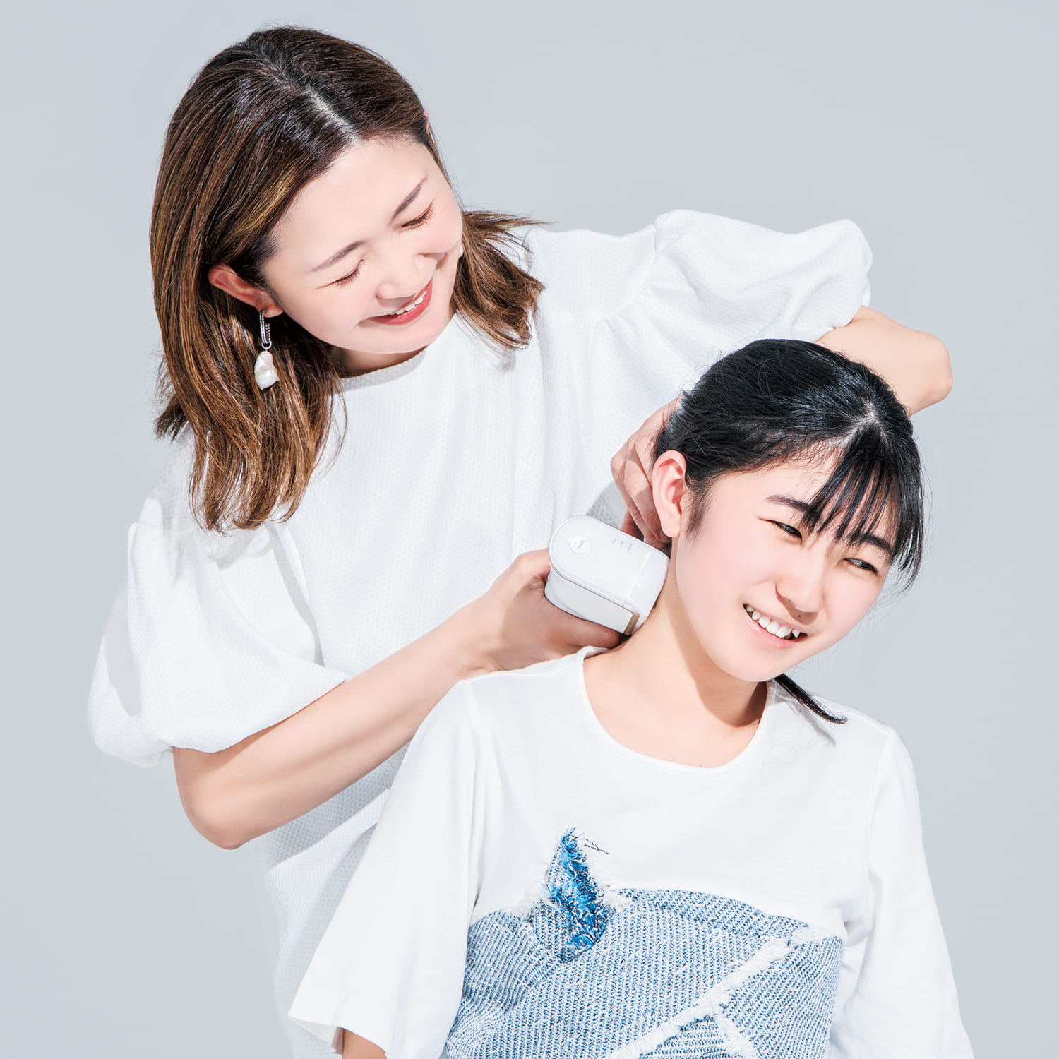 アタッチメントの着脱が簡単。うなじも母に手伝ってもらいやすくて嬉しいです。洗えて清潔なのもいい!(るかさん)