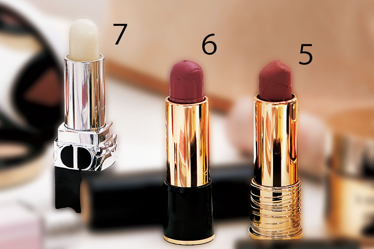 5ほどよい赤みブラウンのマットリップ。ランコムのラプソリュ ルージュ インティマット218はどんなメイクにも合う一本。6大人肌をキレイに見せる。ランコムのラプソリュ ルージュ クリーム 264はクリーミーなツヤリップ。7ディオールのバームで唇の縦ジワをオフ!ひと塗りで、ぷるんとした唇に。