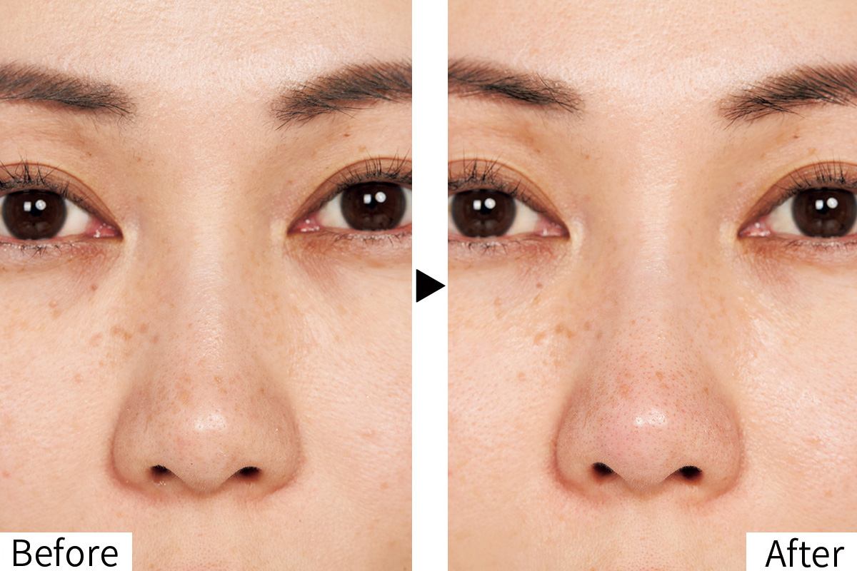 1回の使用でも、鼻中央の大きい角栓がオフ。埋もれた小さい角栓も表面に出て除去できました。ザラつきがなくなり、見た目からスベスベ。くすみが晴れて明るく見えます。