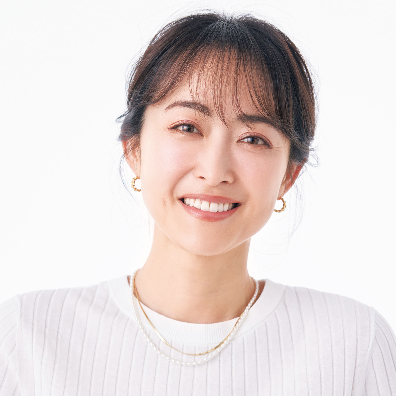 ニット¥16,500(アンタイトル)ピアス¥18,700〈ココシュニック オンキッチュ〉(ココシュニック)パールネックレス¥50,600〈Pearl for Life〉ゴールドネックレス¥2,640〈アプロ〉(ともにロードス)