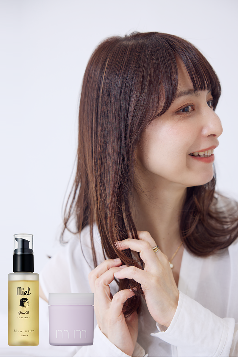 毛先を外ハネに巻いてオイル&バームをオン。