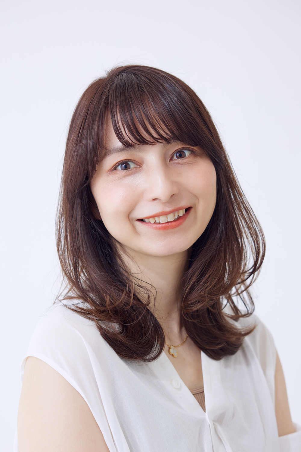 肩先でふわんと弾むカールが素敵。レイヤーカットで段差をつけておき、さらに毛先を柔らかくぼかすようなカットがポイントだそう。アイロンで巻きやすいことも計算されています。