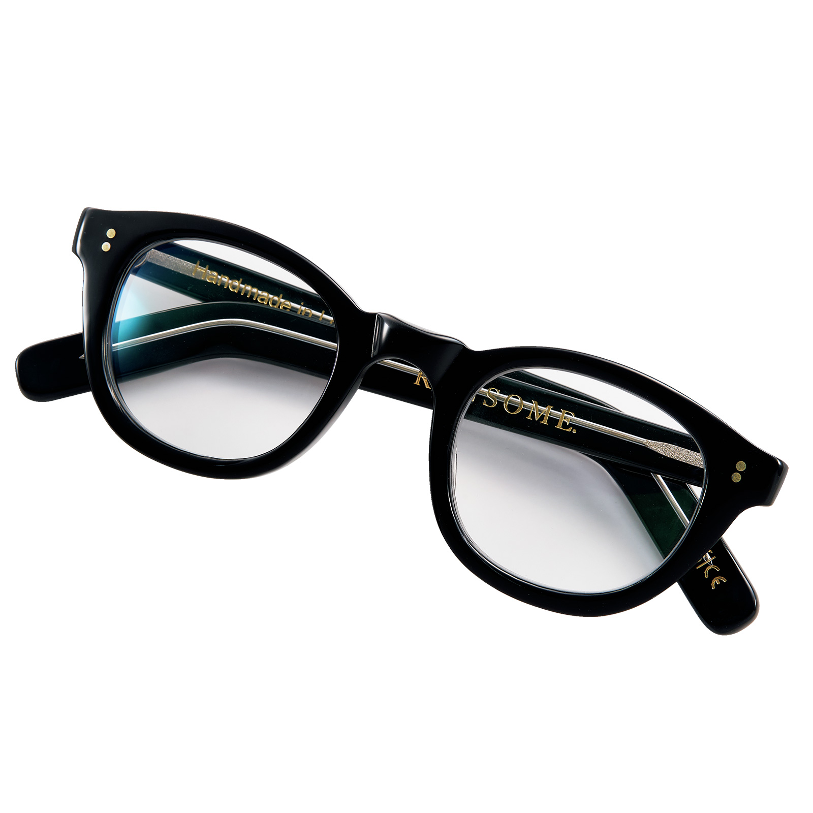 クールな印象に。「SA Color Sensor」UV420カット調光レンズ(ブルー)¥15,400ブラックフレーム¥77,000[ランサム オプティカル](ともにブリンク ベース)