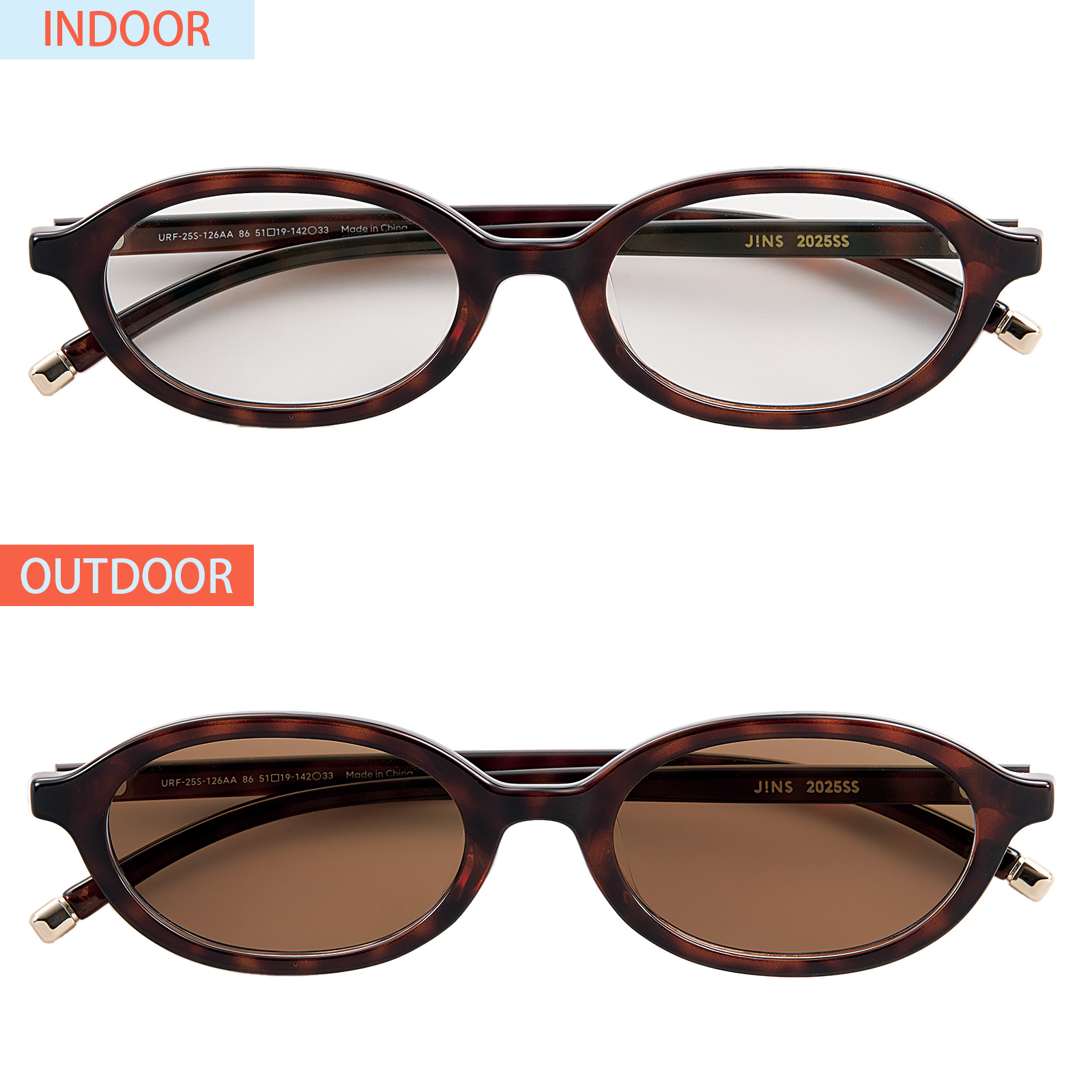 紫外線だけでなく、目に見える光にも反応し、車の中でも、最大濃度25%程度色づきます。フレーム¥10,900レンズ¥8,800(ともにJINS/JINS カスタマーサポートセンター)
