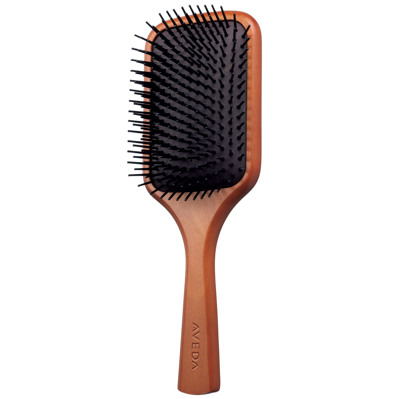広い面で髪をしっかりキャッチ。クッションパッドでほどよい強さの刺激を与える。パドル ブラシ ¥5,060(AVEDA)