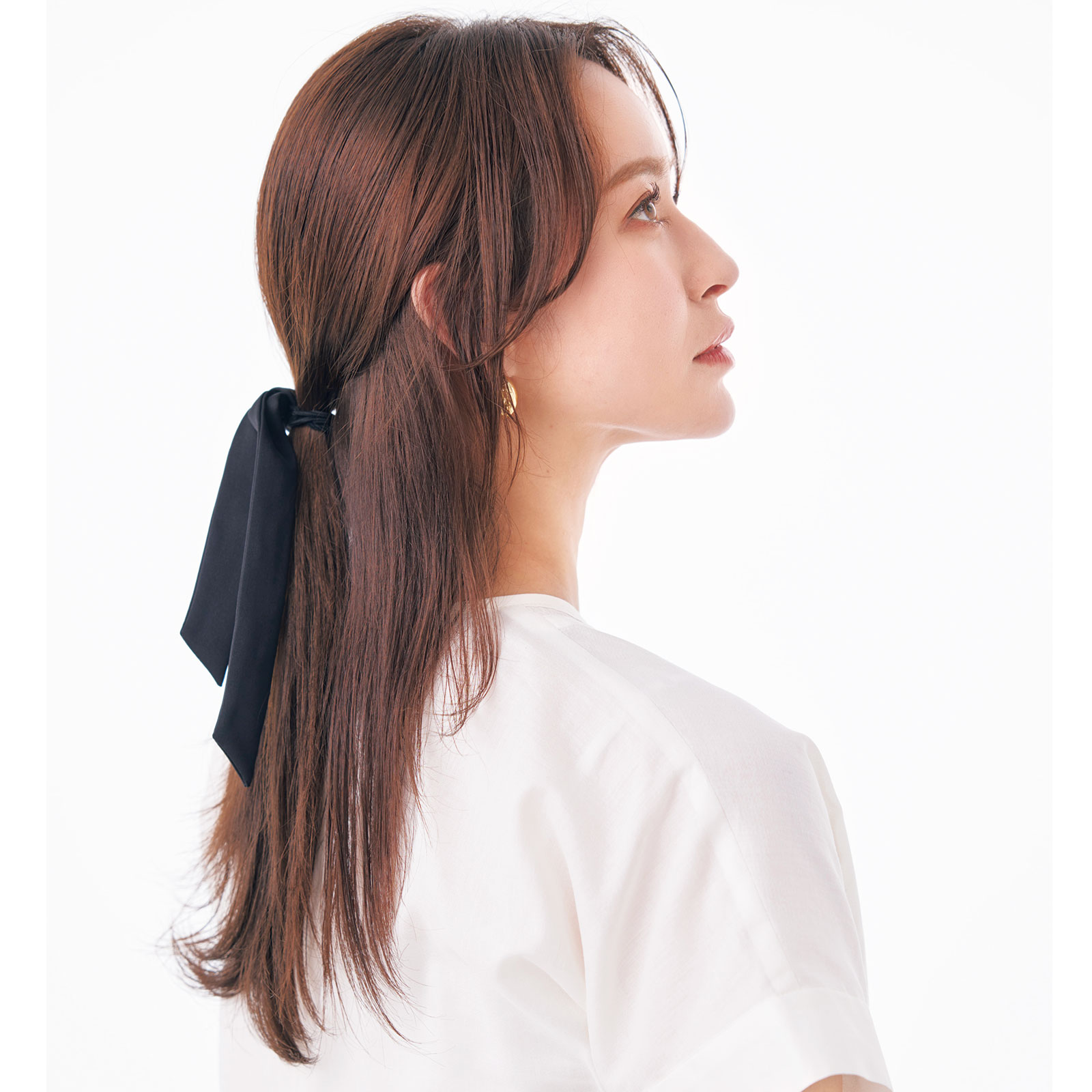 収まりのよい低めの位置でまとめればJカールの毛先がほどよく揺れる仕上がりに