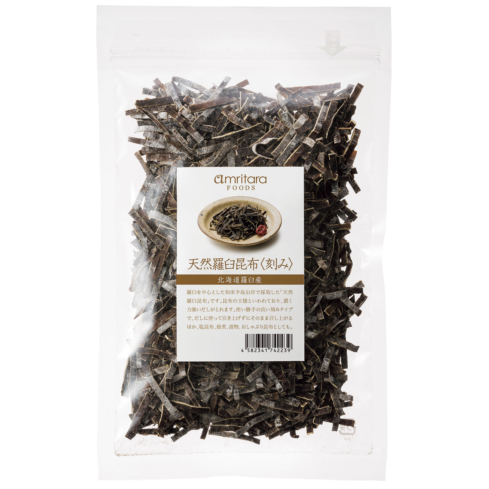 北海道に自生する貴重な天然昆布。海の豊富なミネラルがたっぷり。天然羅臼昆布 刻み65g¥1,296(AMRITARA)