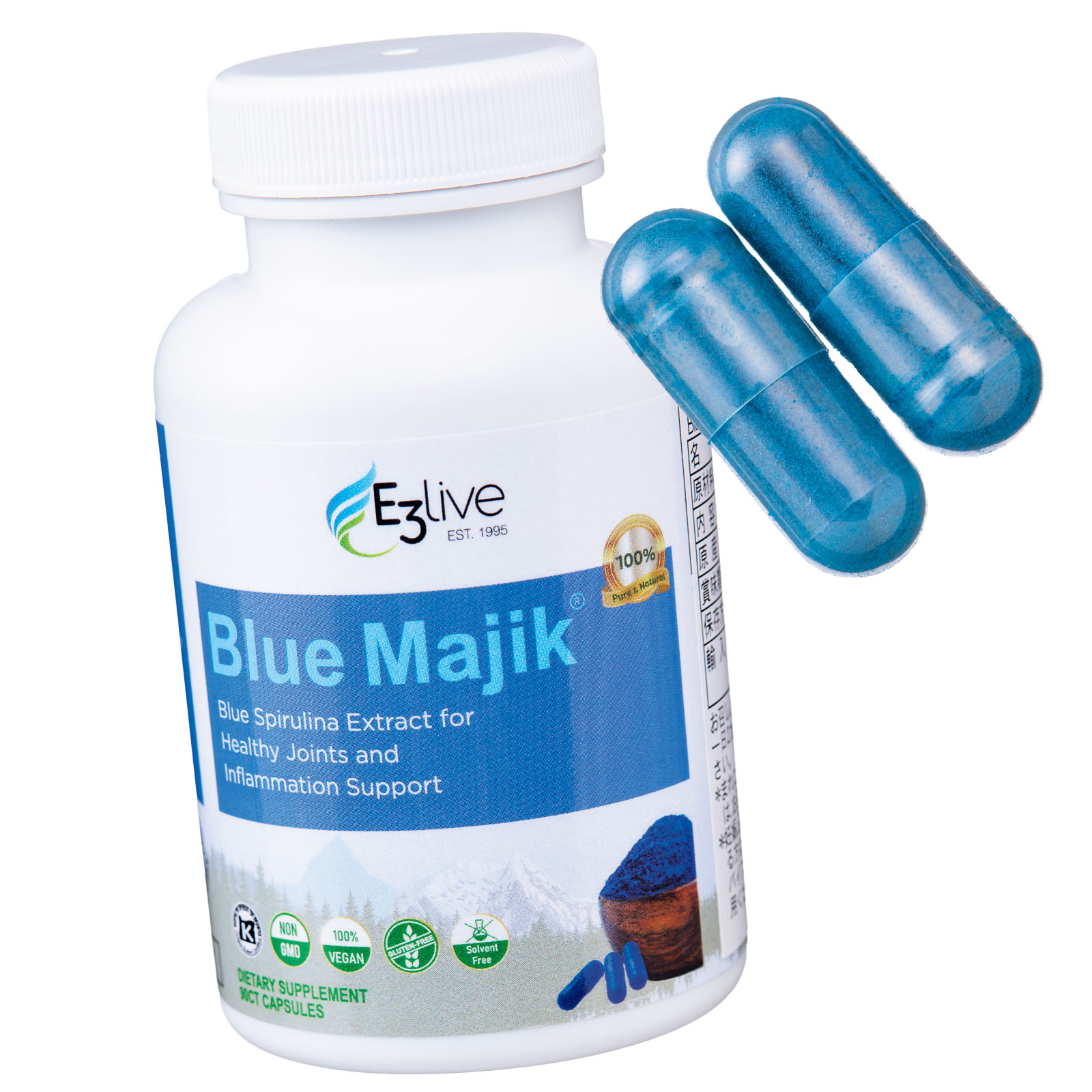 眼精疲労には2粒プラスして摂取。Blue Majicカプセル 90カプセル ¥19,440(E3Live Japan)