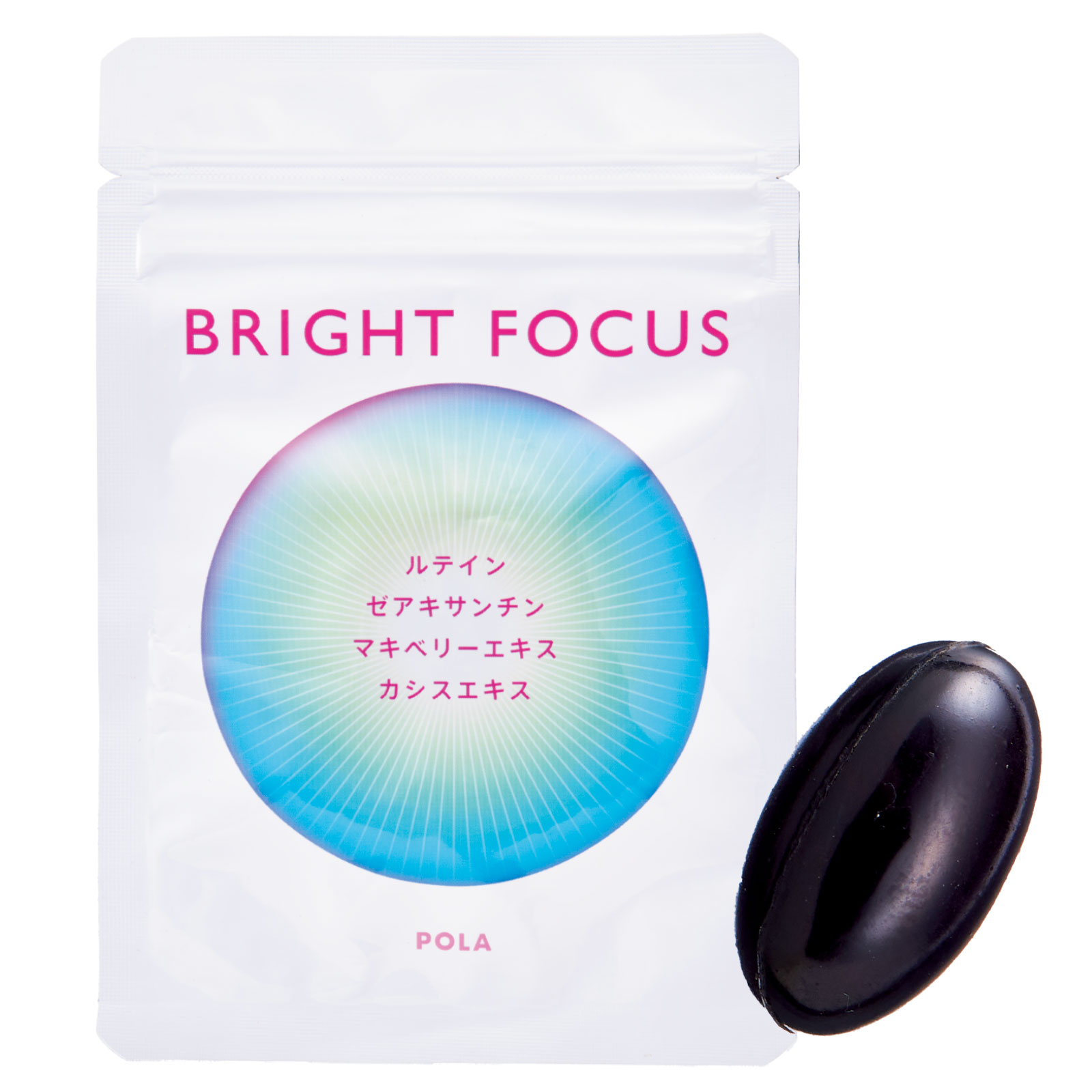 アントシアニン素材配合。目の機能回復の効果が期待。ブライトフォーカス 30粒 ¥4,860(ポーラ)