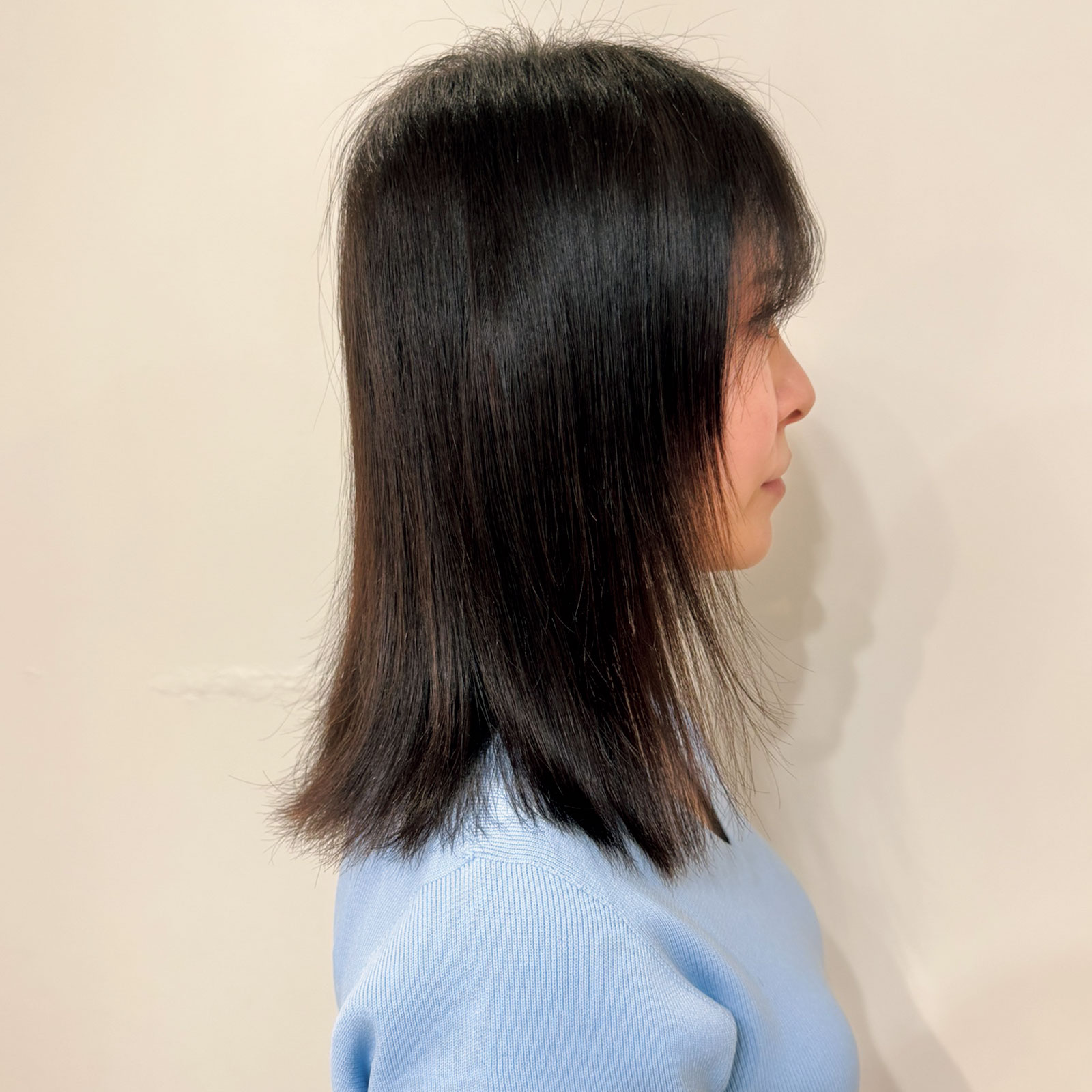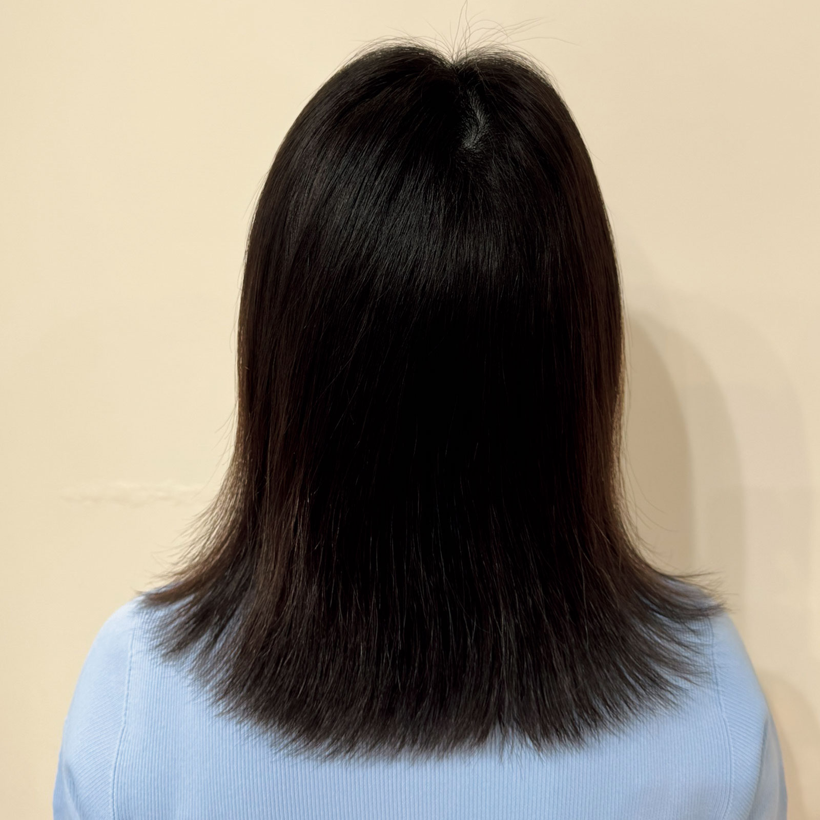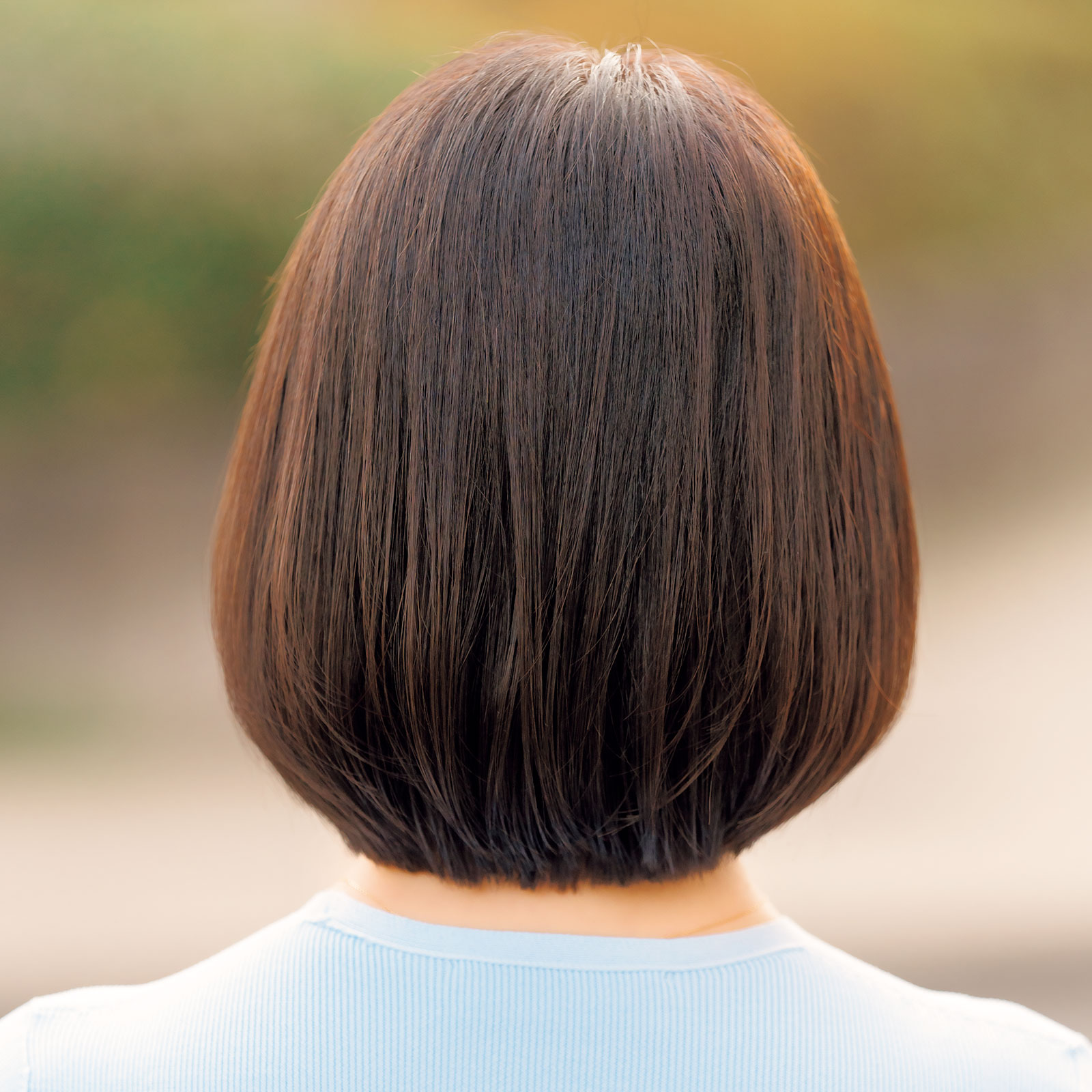根元のクセをカットでカバー&重くならない白髪染めでツヤ感ボブ