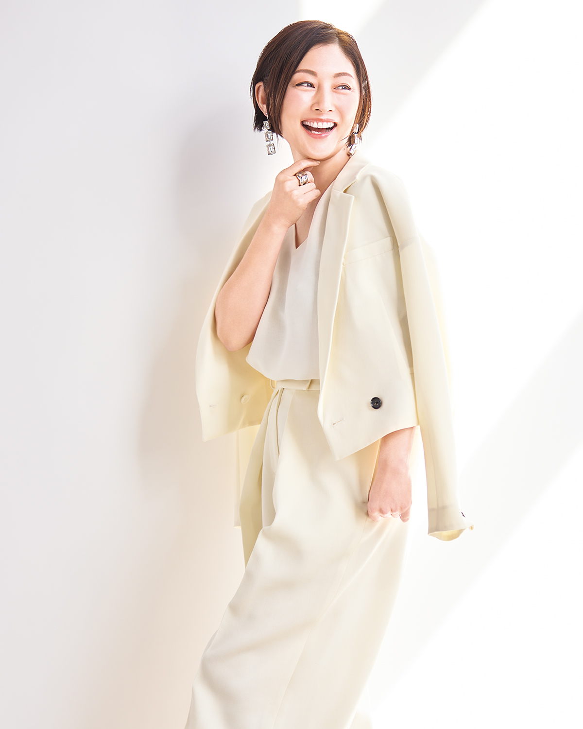 写真1・2枚目:ワンピース¥49,500(LE PHIL/LE PHIL NEWoMan 新宿店)「ヴィンテージ アルハンブラ」イヤリング〈YG×マラカイト〉¥753,500人差し指リング〈YG×DIA×マラカイト〉¥665,500中指リング〈YG〉¥599,500(すべてヴァン クリーフ&アーペル/ヴァン クリーフ&アーペル ル デスク)写真3枚目: 。ジャケット¥88,000プルオーバー¥38,500パンツ¥93,500(すべてアキコ オガワ)イヤリング¥22,000〈masae〉リング¥3,900〈soie〉(ともにロードス)写真4・5枚目:Tシャツ ¥99,000 パンツ<店舗限定>¥203,500(ともにファビアナフィリッピ/アオイ)[右手]「ヌード」人差し指リング<RG×WG×ローズクォーツ×カルセドニー×DIA>¥715,000 薬指リング<RG×WG×ホワイトトパーズ×DIA>¥715,000[左手]人差し指リング上<RG×WG×ローズクォーツ>¥363,000 人差し指リング下<RG×WG×スカイブルートパーズ>¥495,000「イコニカ」中指リング<RG>¥253,000(すべてポメラート/ポメラート クライアントサービス)写真6枚目:オールインワン ¥86,900(アキコ オガワ)ピアス ¥3,900<soie>右手リング ¥17,600 左手リング ¥26,400<ともにtsugumi iwamoto>ブレスレット ¥3,850<ヘンカ>(すべてロードス)