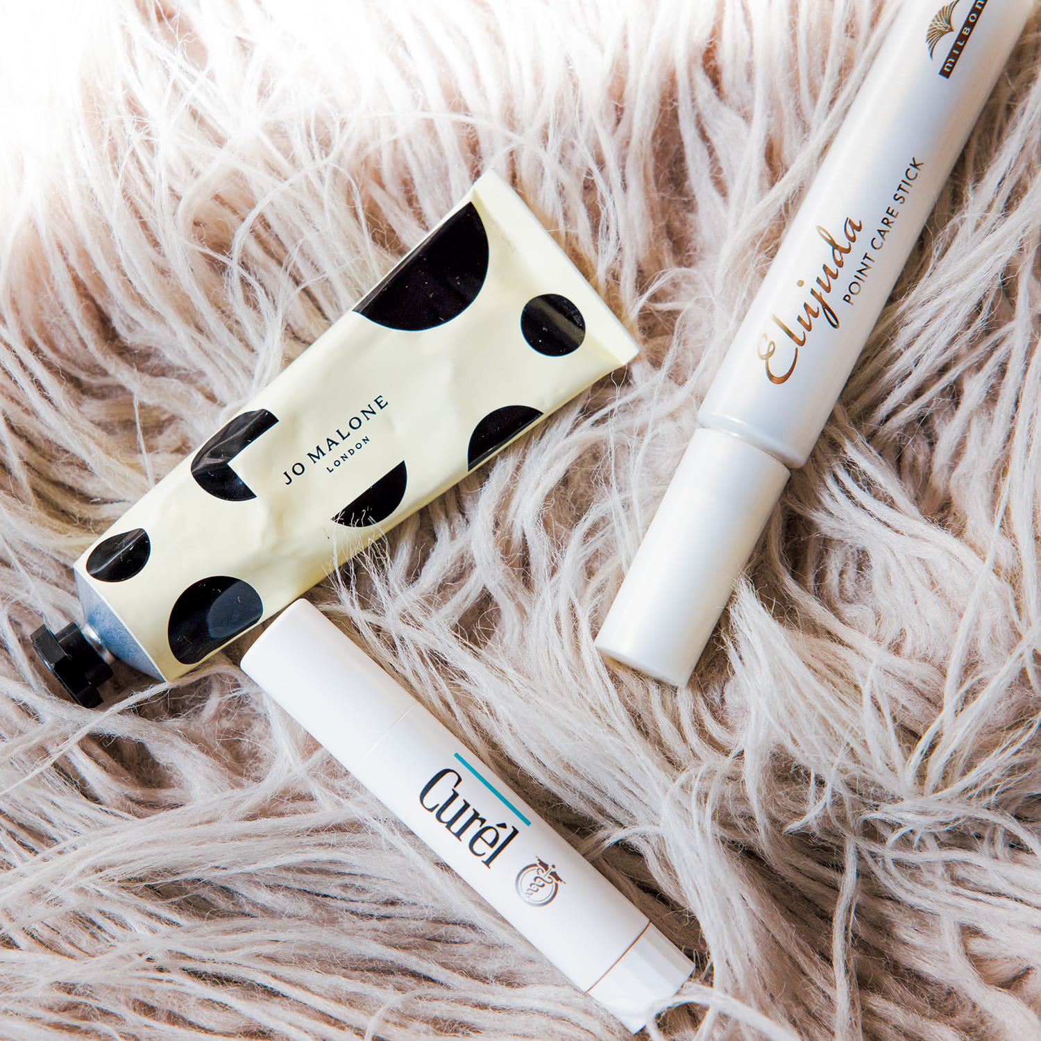 ジョーマローンのハンドクリーム、リップクリーム、ミルボンのエルジューダポイントケアスティックは見えるところに置いてこまめにケア。