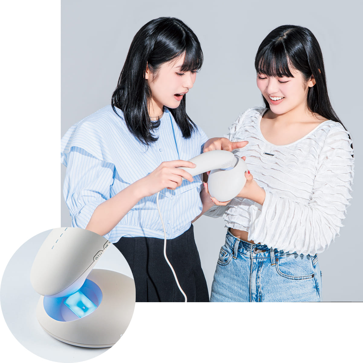 付属のスタンドに置くだけで、オートクリーンシステムが作動するのが画期的!(香蓮さん)照射間隔が短くて嬉しいです。衛生的だから、家族でシェアするのも安心。(ののかさん)