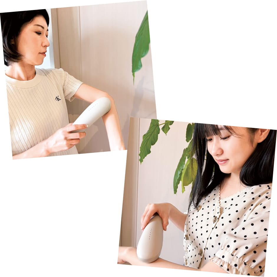 ハイスペックでスピーディーなIPL照射システムを筆頭に、冷却機能や肌色検知センサーなど、照射時の痛みやストレスを軽減しながら安全性にもしっかり配慮。脱毛初心者が安心してホームケアできるスペックを網羅した高コスパな一台。ムダ毛ケアモードだけでなく、美肌ケアモードでは肌の赤みやくすみにもアプローチ。使用後、本体をスタンド(電池稼働)に設置するとクリーンシステムが作動し、照射面の清潔さを保つので家族でシェアする際も快適。2色展開、ミルクティーベージュの他にコットンホワイトも。¥48,000(STELLA BEAUTE)