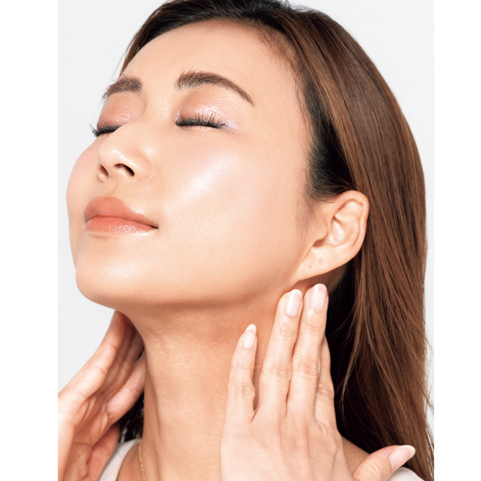 たるみにむくみが重なるとWで老け見え。むくみを解消するためには、耳から鎖骨へと優しくさすって余分な水分や溜まった老廃物を流します。日頃からパソコンやスマホの見すぎでこり固まりがちなので、習慣化するのが脱ブルドッグへの近道!