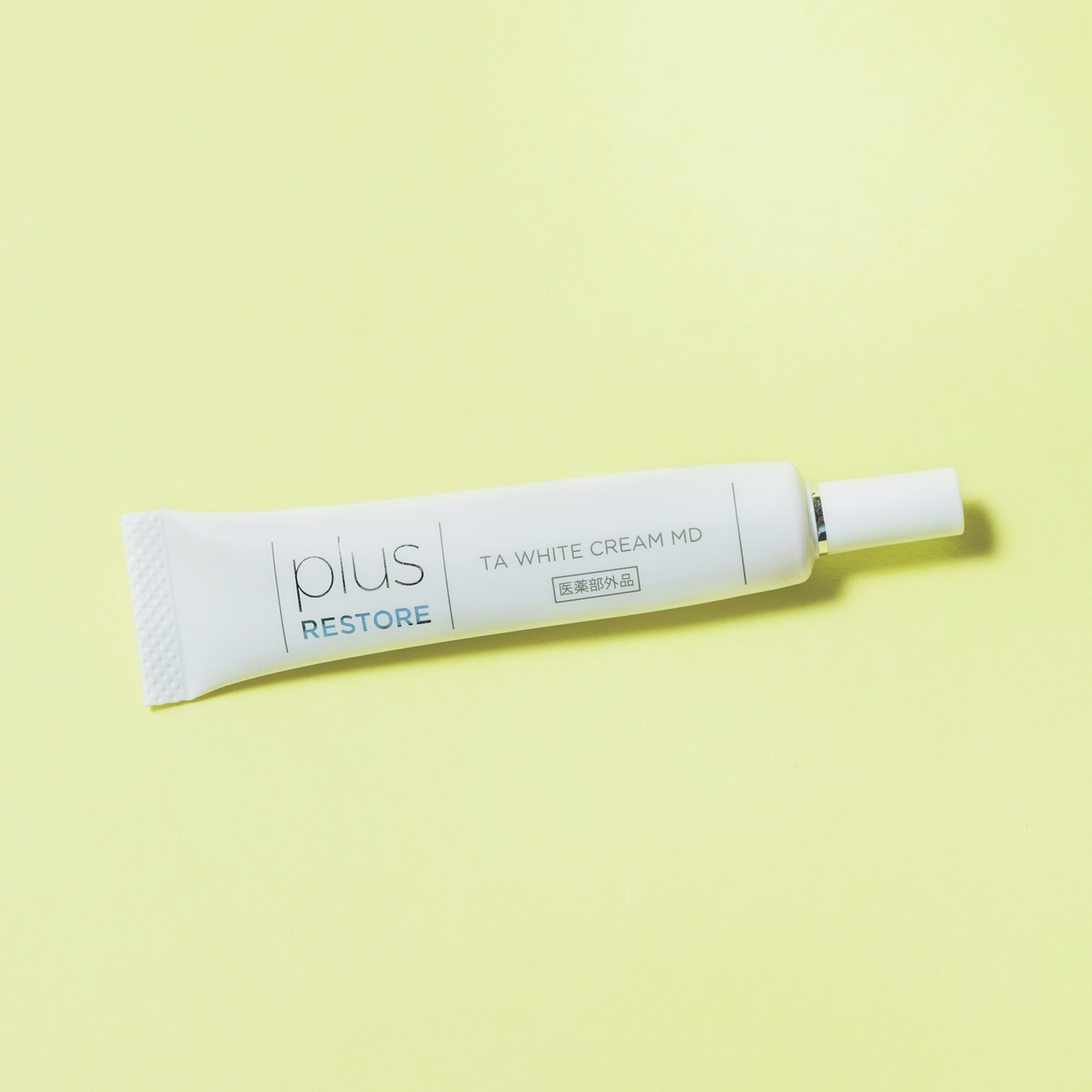 プラスリストアのホワイトクリームはトラネキサム酸配合で、メラニンの生成を抑えてくれるので特にシミができやすいところにスポット塗り。クリニックいらずになりました。