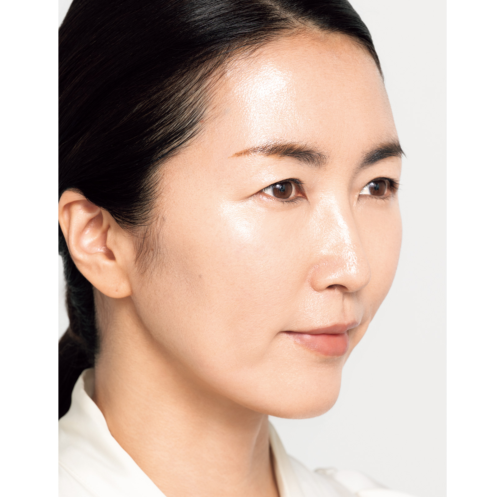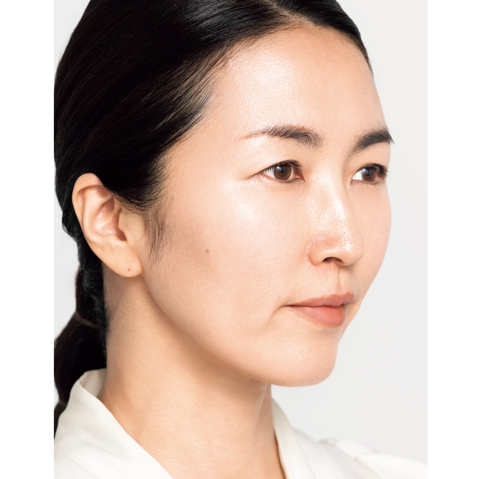 面長で頰の面積が広く、口周りの影が目立ちがち。さらに顔全体のくすみや血色のなさも悩み。バイタリフト RFでケア後は、肌トーンが一気に上がり生き生き感がアップ! ふっくらしつつもメリハリもある、理想の顔立ちに。