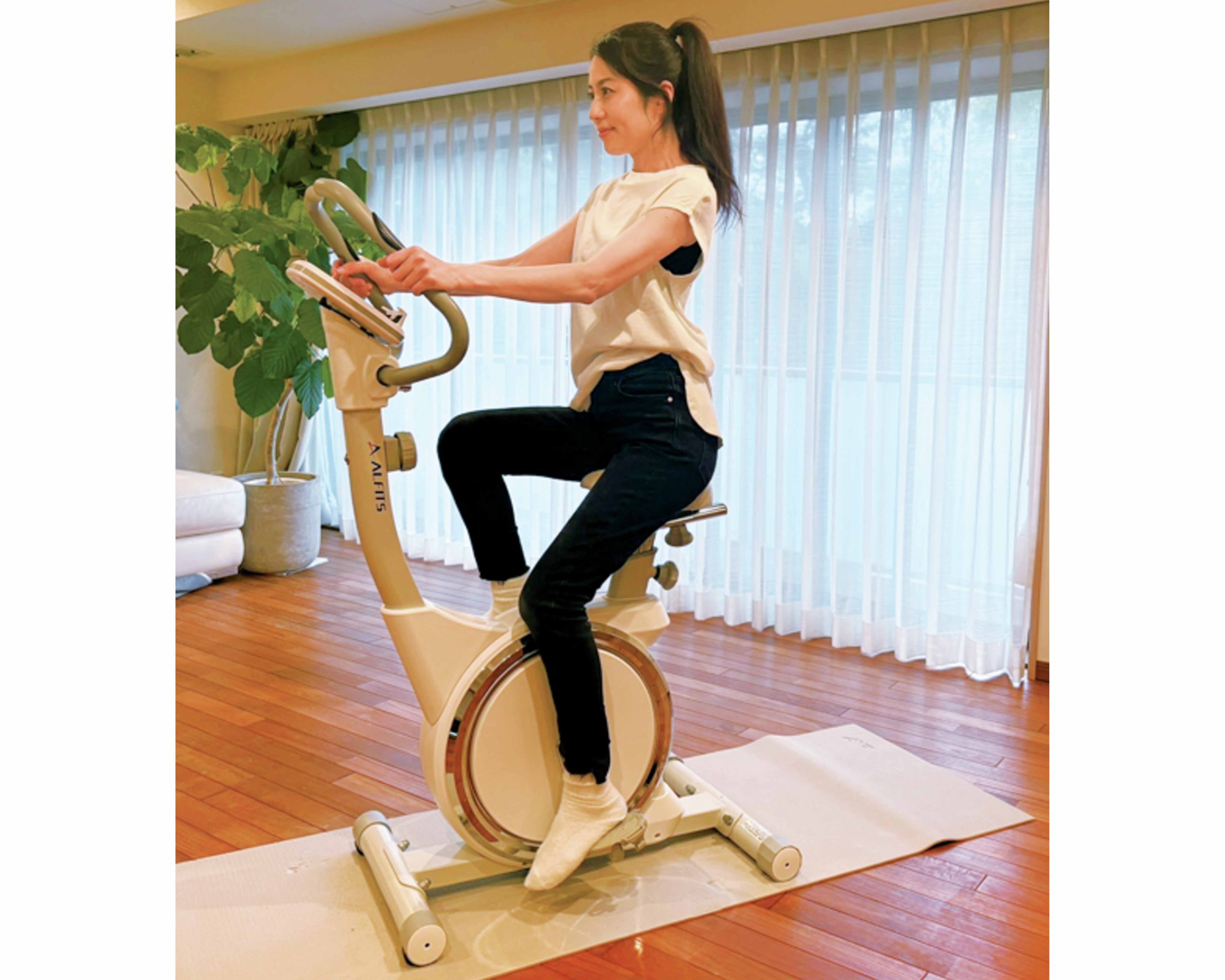 ヒョクさんが出演しているドラマを見ながら自宅でエアロバイクを漕いでシェイプアップ。
