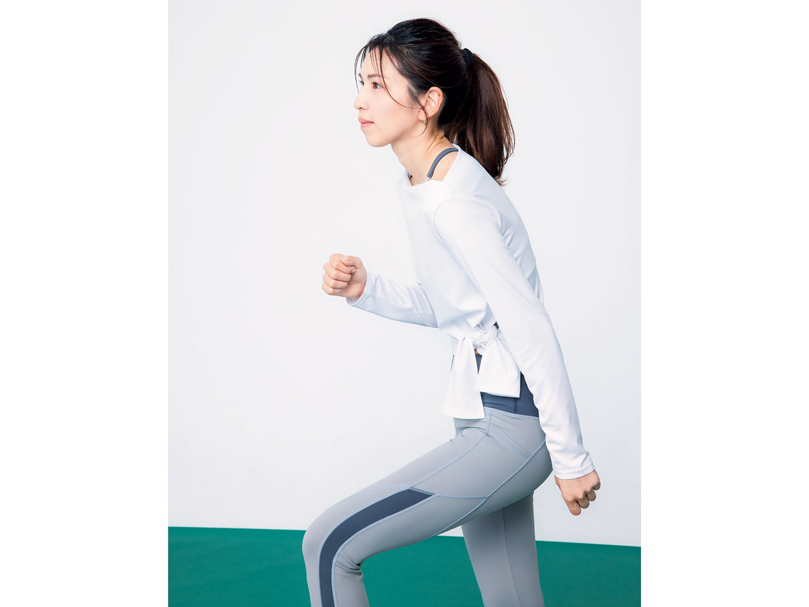 前のめりの姿勢になると、体幹が抜けてしまい体の軸がぶれて膝や足首の負担に。さらに本来鍛えたい太ももへの負荷が十分に伝わらず効果が低下する原因に。