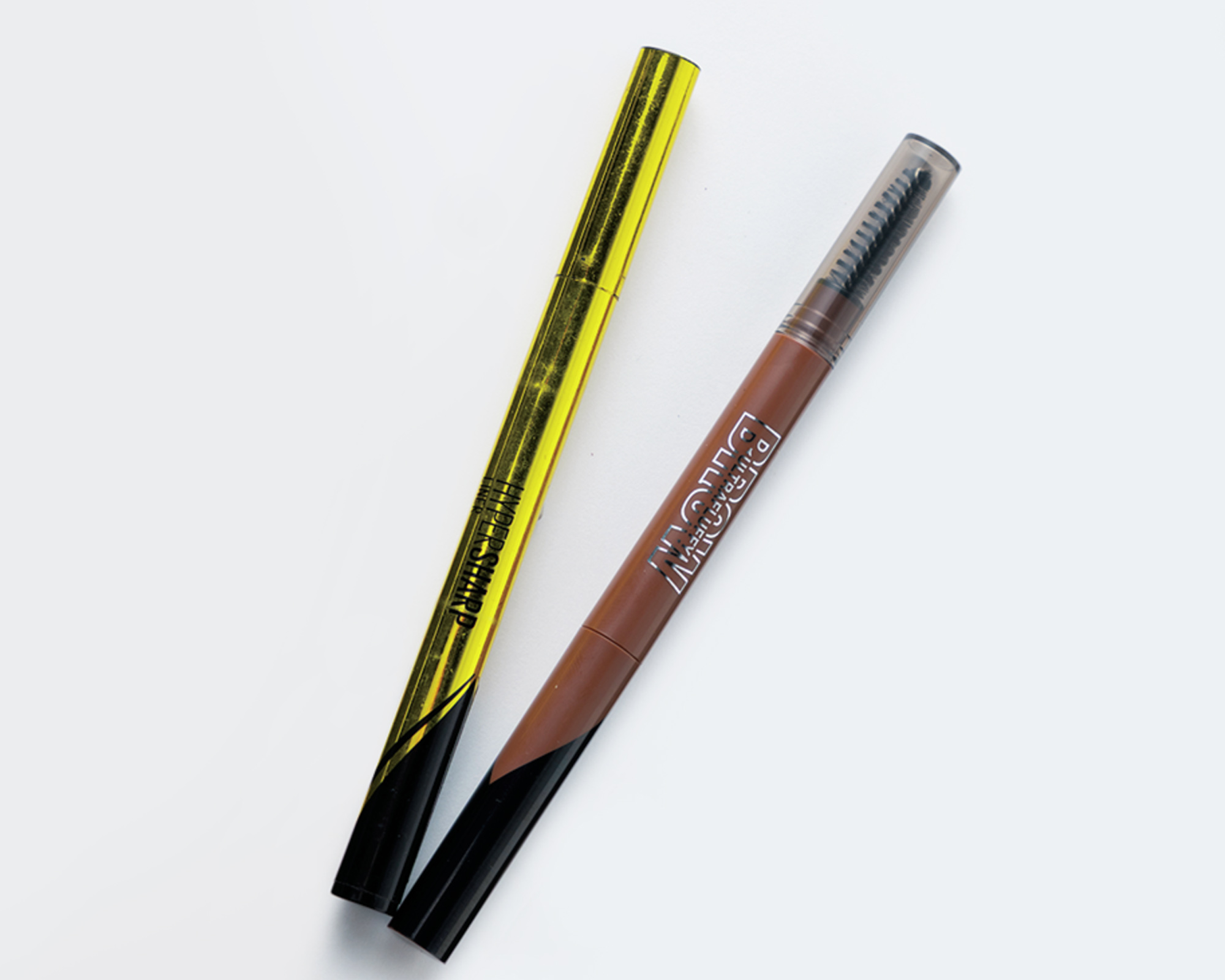 右から)美ST 付録のメイベリンのアイブロウBR-3でふわっと自然な眉を描き、同アイライナー BK-1でまつ毛の隙間を埋めます。