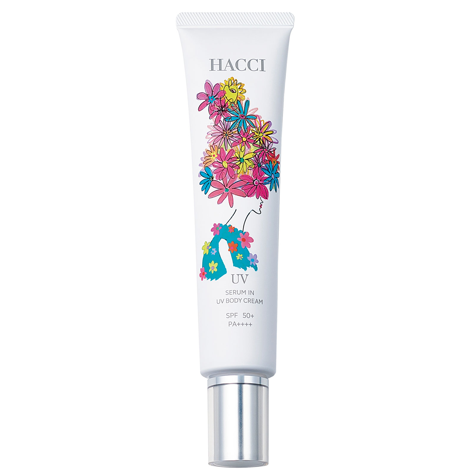 「くすみがちなデコルテや手元ケアにはこれ。紫外線をカットしながらリアルダイヤモンドの輝きでリッチな発光肌に」SPF50+・PA++++70g¥7,040※限定品(HACCI)