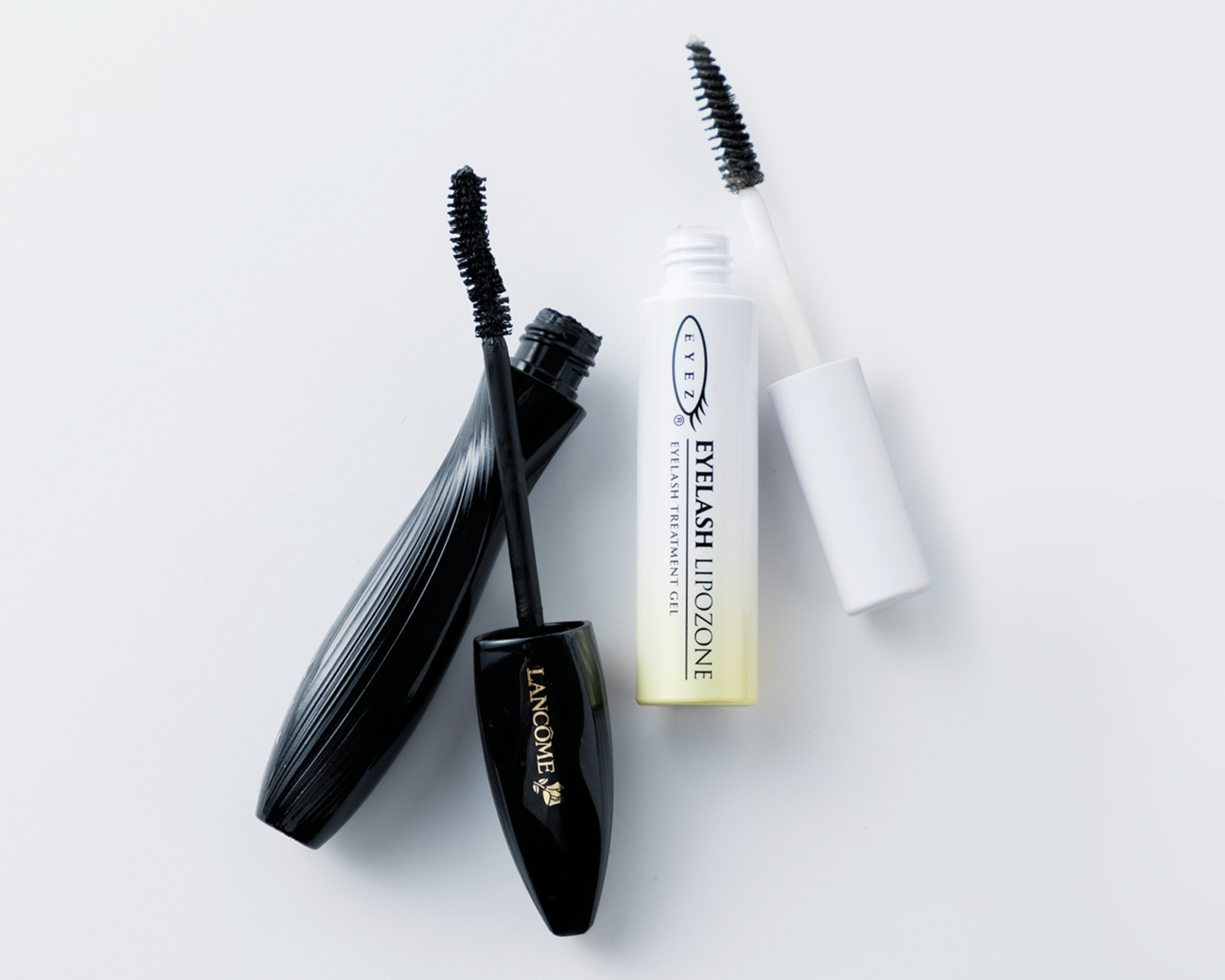 右から)まつ毛美容液はハリやコシが出るアイズ。マスカラはライブで汗をかいても落ちないランコムのマスカラ(01)を使用。