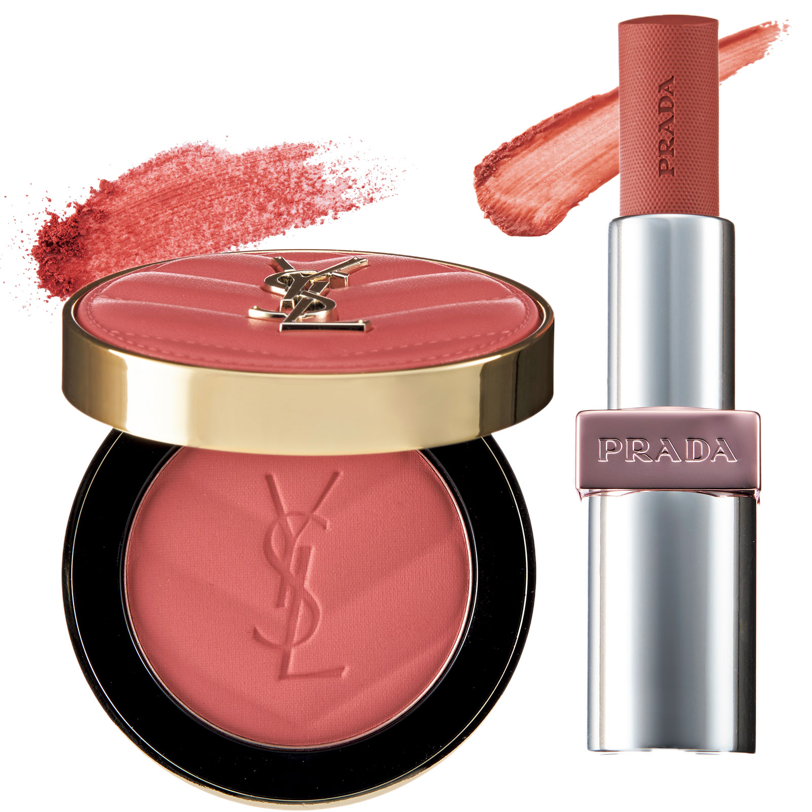 左:光を操り毛穴や凹凸までカムフラージュ。軽やかにふんわり血色感を与えます。YSL メイクミーブラッシュ パウダー 37 ¥8,360(イヴ・サンローラン・ボーテ)