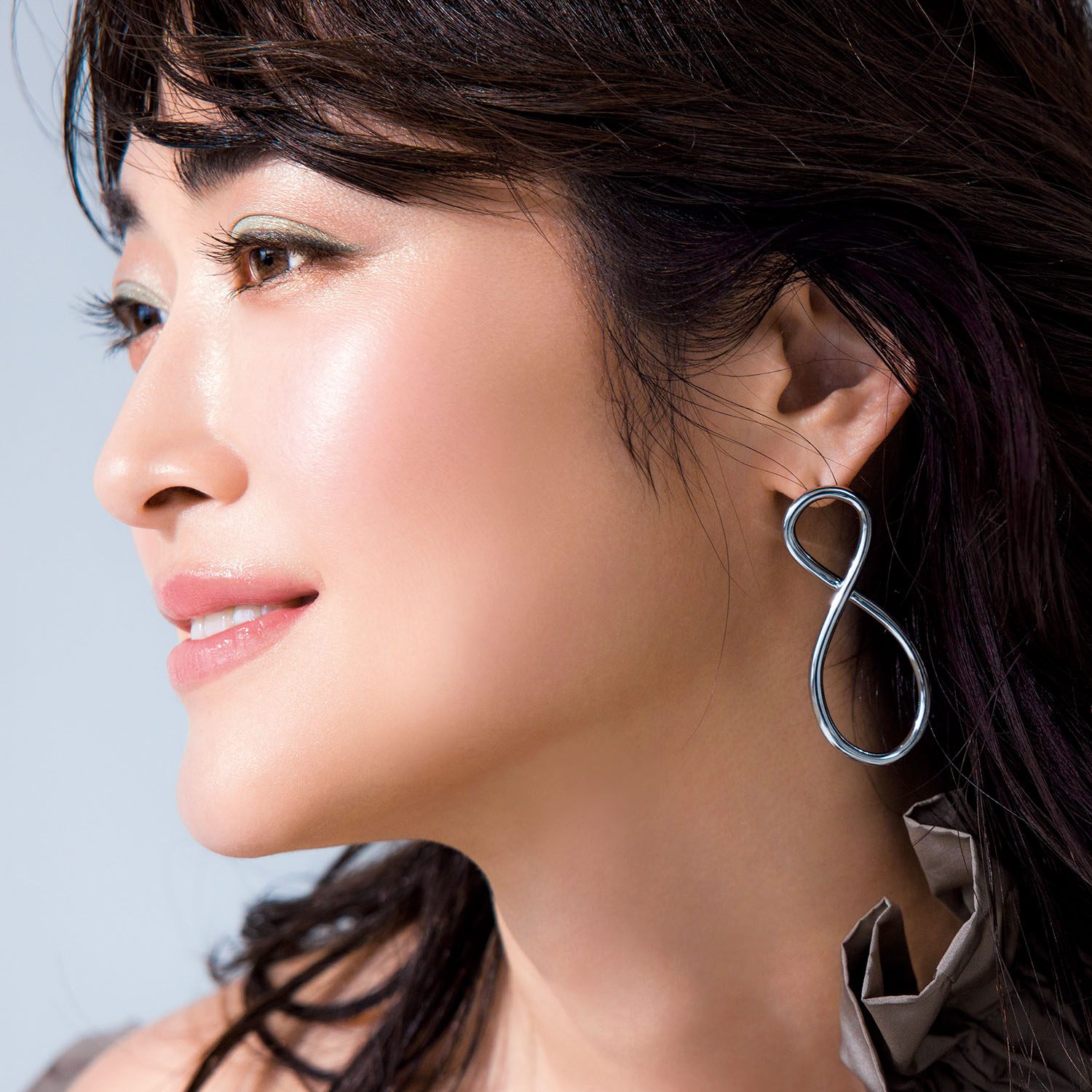 ブラウス ¥27,000(シーニュ)ピアス ¥14,300<サローネ サーティ>バングル ¥70,400 リング ¥26,400<ともにミチ ウィルウェイ>(すべてフォーティーン ショールーム)