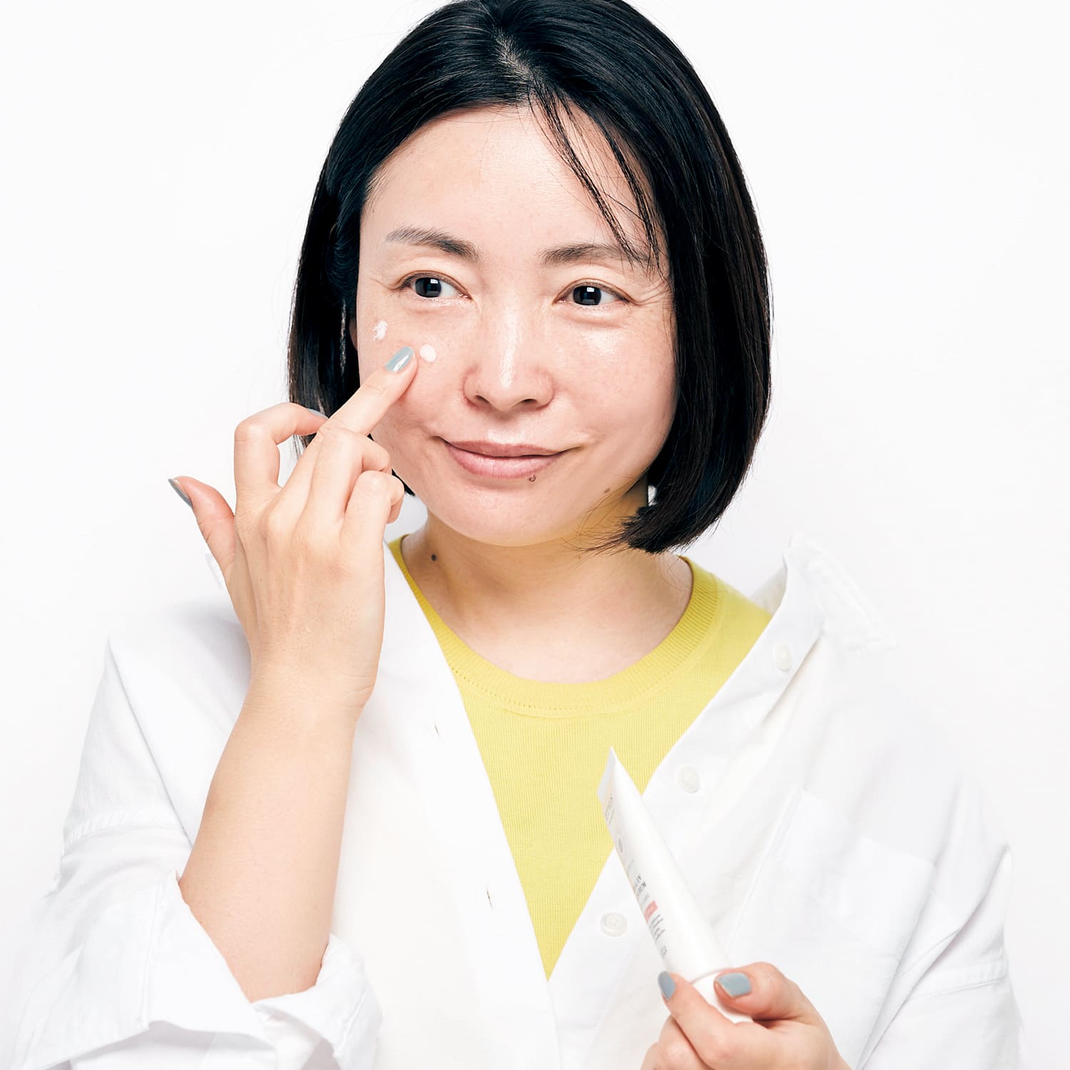 赤みが出やすいので、気になるところには多めに。目の下のくすみやクマ、小鼻にも。付属のブラシでのせ、少し置いてから指でポンポンなじませるとキレイに密着。