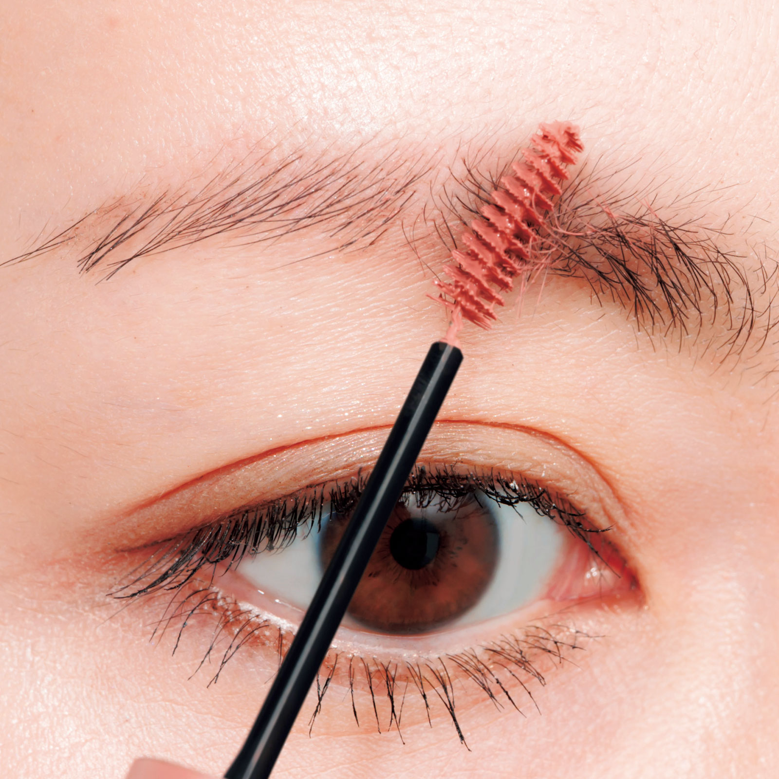 今ドキ感を加えるために、ほんのりピンクカラーを眉全体にまとわせる!