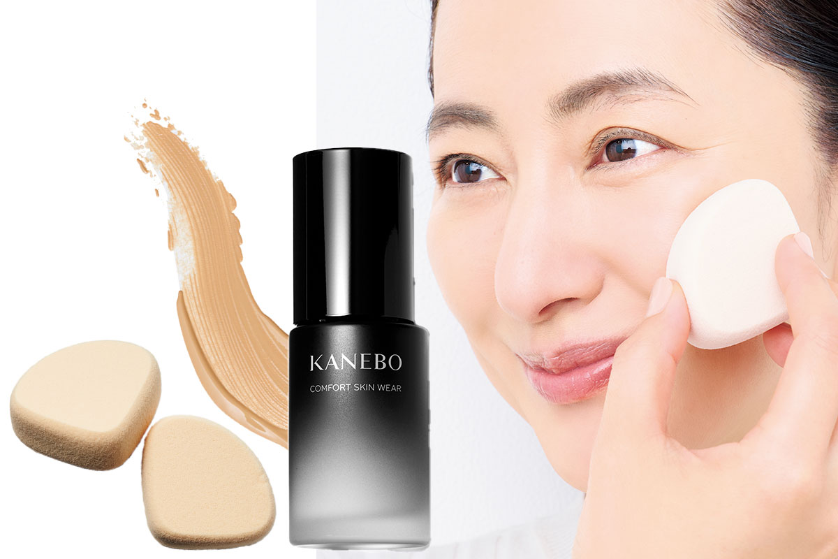 左/メイクアップ スポンジ(リクイッド/クリーム ファンデーション用)2個組 ¥880(Koh Gen Do)、右/肌トーンがアップする美容液ファンデ。カネボウ コンフォートスキン ウェア ベージュC SPF25・PA+++ 30ml ¥6,930(カネボウインターナショナル Div.)