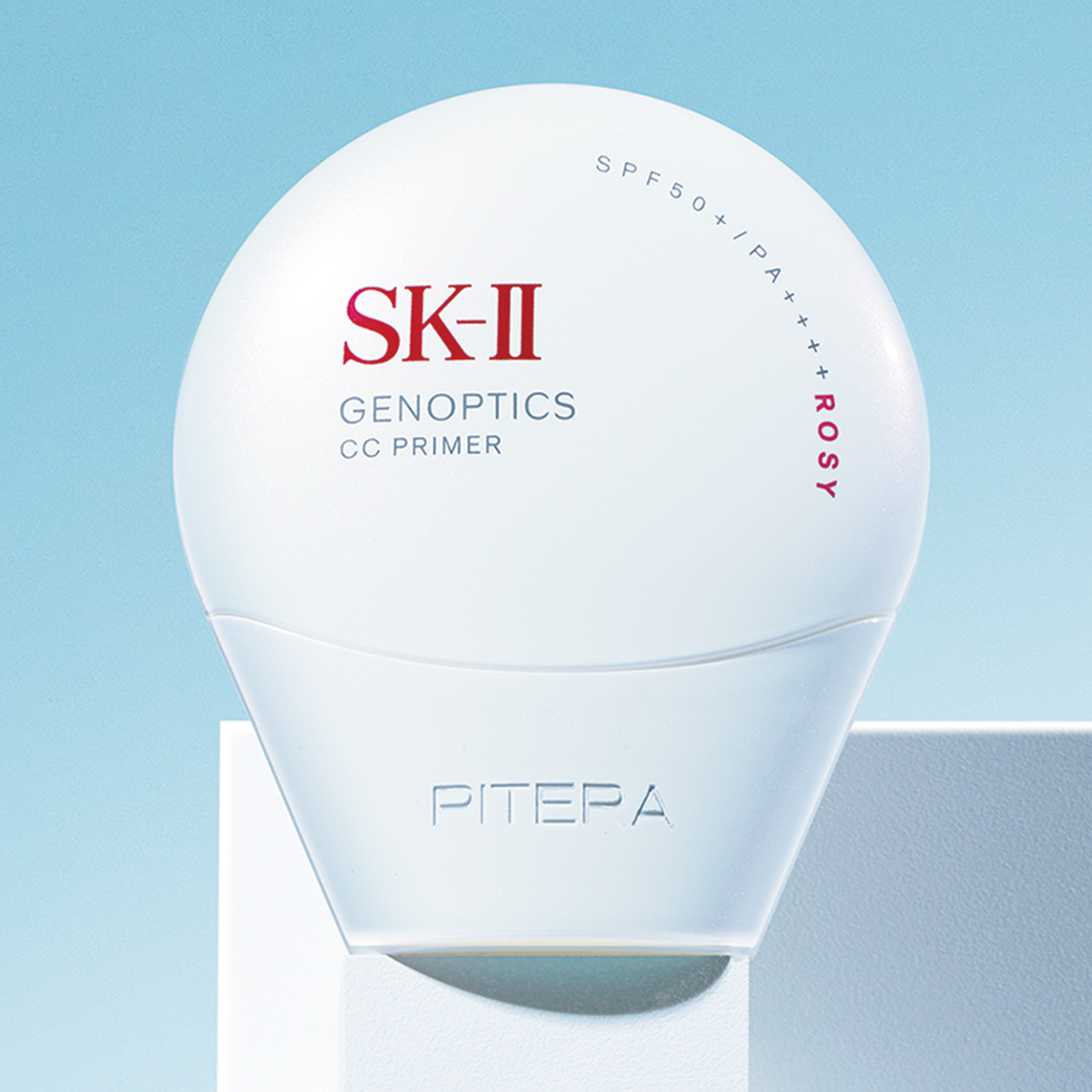 SK-IIならではのピテラ™配合、紫外線を防ぎながら肌に潤いとツヤを与えるCCプライマー。くすみを飛ばしてパッと明るい肌印象まで叶える、ロージーピンクは審査員からの支持を集めた一品。SPF50+・PA++++ 30g ¥9,900〈編集部調べ〉(SK-II)
