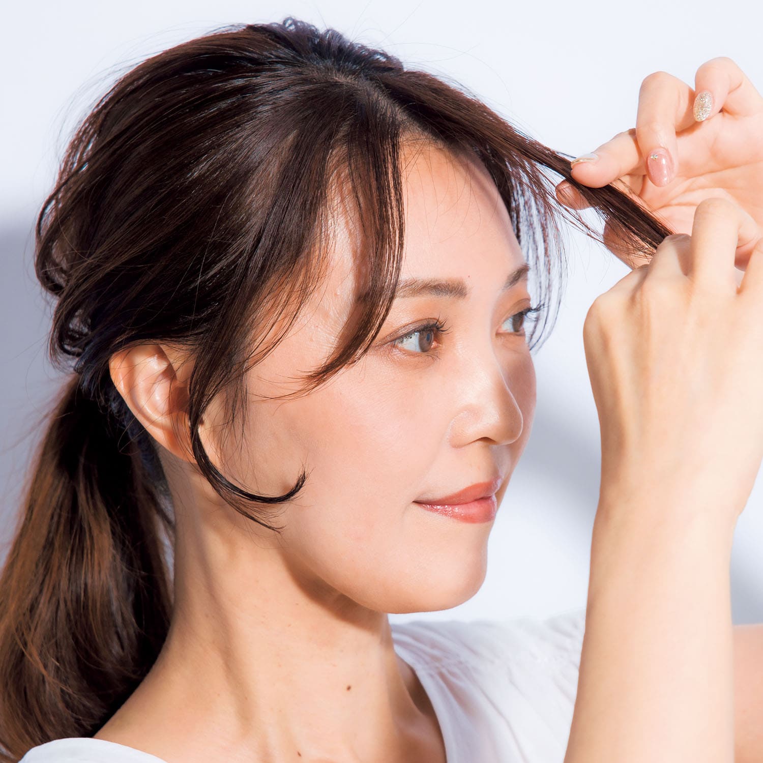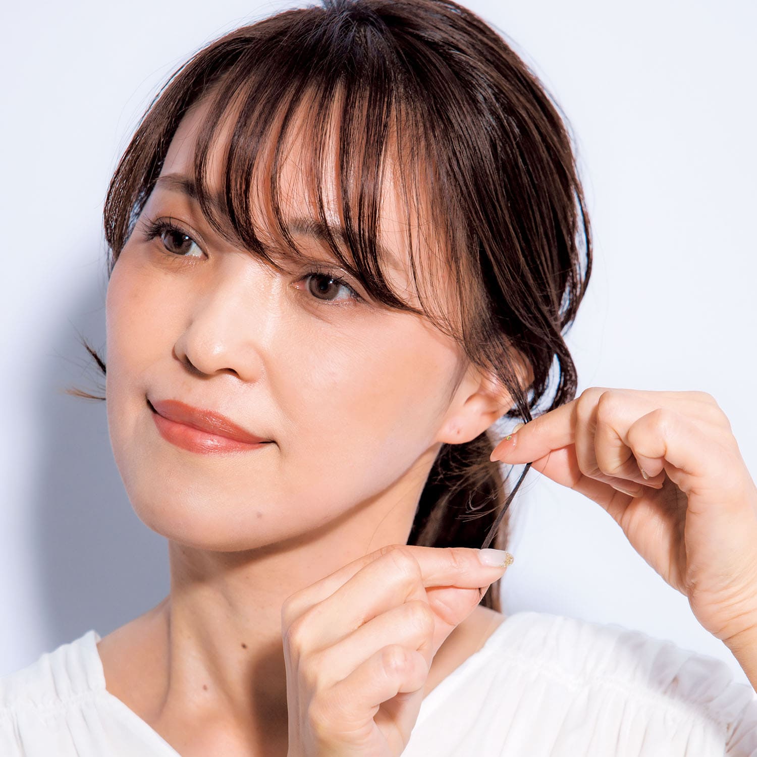 フェイスラインを包み込む顔周りの毛がパサついたり、ぺたんと貼り付いていると貧相でやつれた印象に。ここに「手をかけた感」があると一気に全体の印象が元気に見える最重要ポイントなんです。