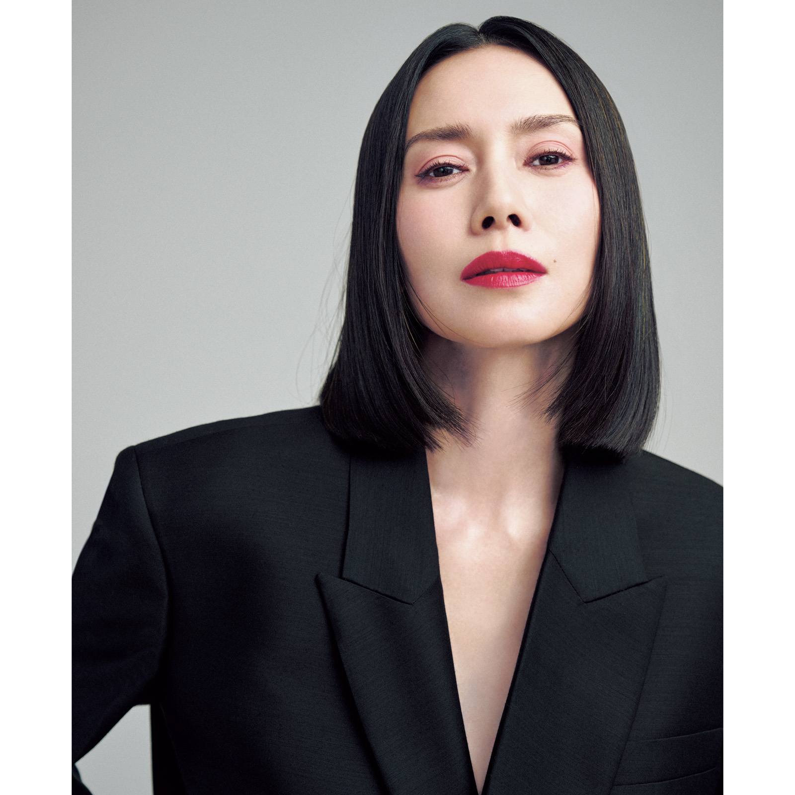 [写真1枚目]素肌の美しさを生かしてナチュラルに仕上げたベースに目元はピンクのグラデ。リップはシアーなピンクルージュにグロスを重ねてほのかなエレガントを醸しながらも自由でヘルシーな印象に。ホルタージレ¥178,200(マックスマーラ/マックスマーラ ジャパン)[写真2,3枚目]つややかな黒髪、素肌に羽織った漆黒ジャケット。オールブラックルックには青みがかった赤色のベルベット質感リップをアクセントに。シンプルななかにも高潔な大人の色香が漂う。ジャケット¥548,130パンツ¥315,810(ともにランバン/コロネット)