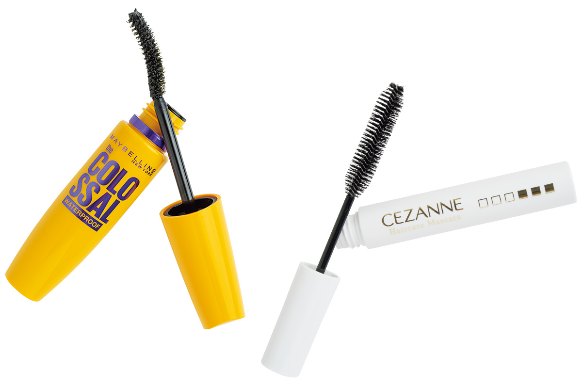 サロンで髪のケアに注力! 毛力アップコスメはプチプラで。娘ともシェアしています。左のメイベリン ボリュームエクスプレスマスカラ01は根元からまつ毛が立ち上がりクッキリ。他を試しても必ず戻ってしまう逸品。右のセザンヌのヘアマスカラはくせ毛の私の、夏の必需品です!