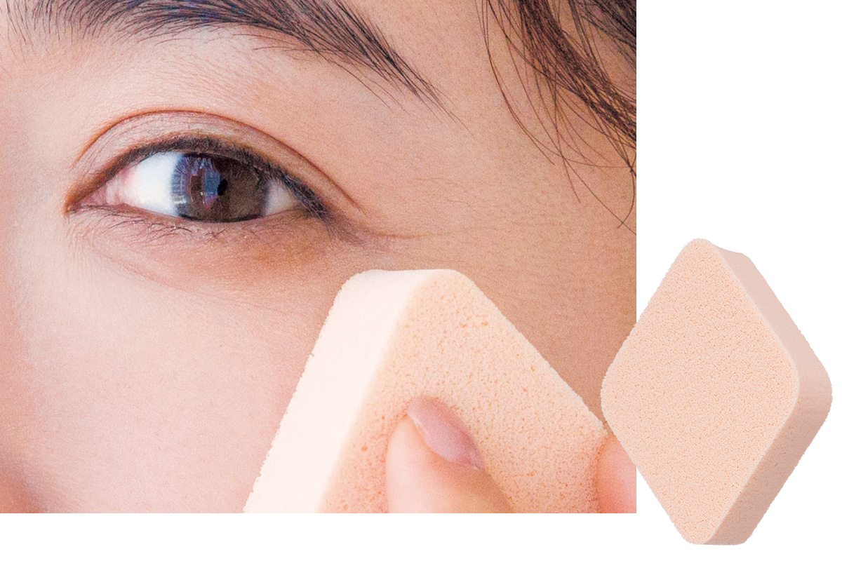 〈使用アイテム〉23mmの厚みでファンデをムラなく伸ばせる。柔らかな感触で肌に優しい。バリュースポンジダイヤ 6P ¥638(ロージーローザ)