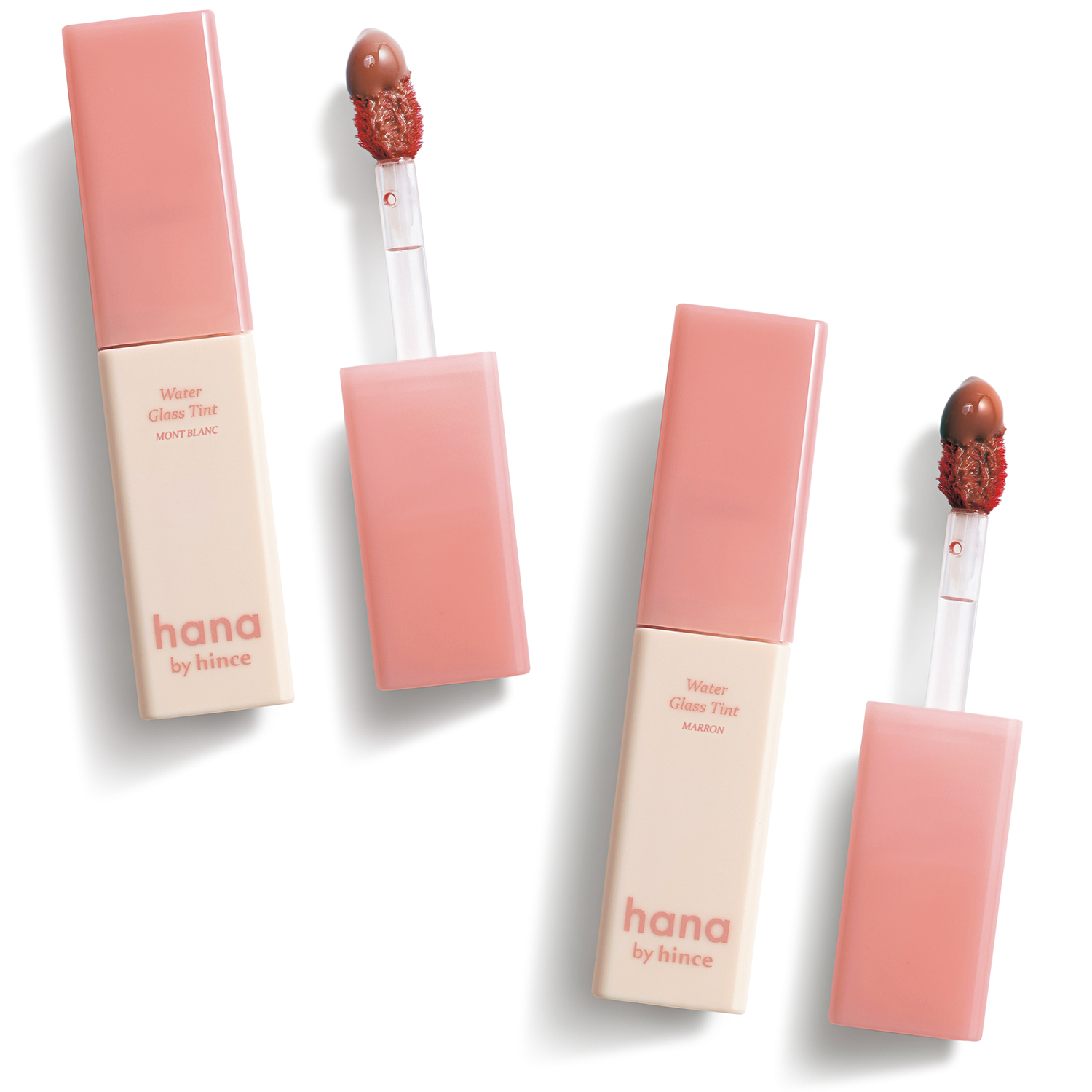 スキンケア成分が配合され、乾燥しにくい。9月12日発売予定、左:hana by hince ウォーターグラスティント 05 モンブランミルク、右:同 06 マロングラッセ 各¥990(ともにファミリーマート)