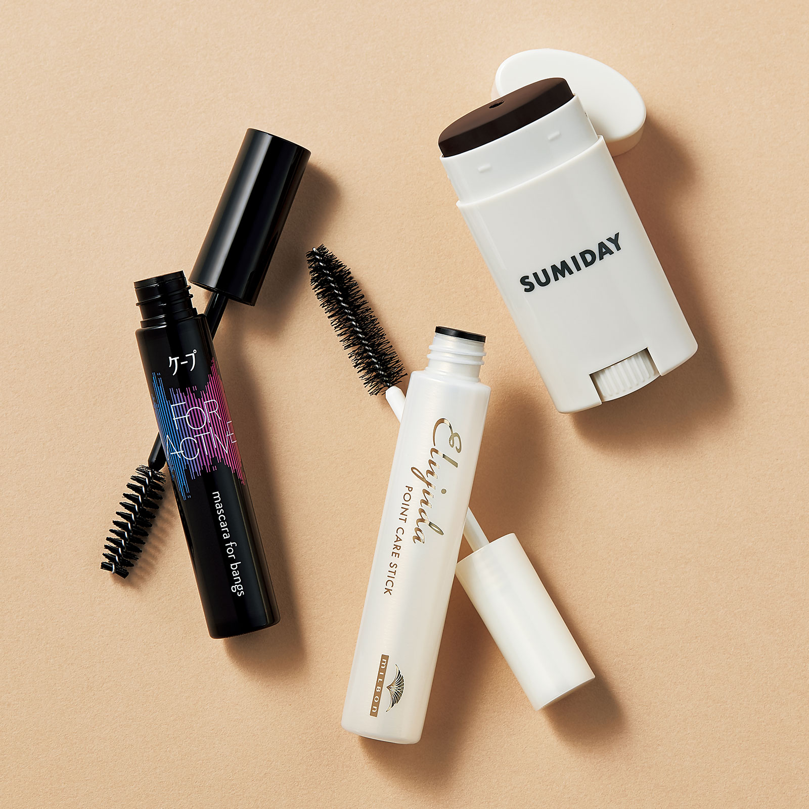 左・前髪特化型ヘアマスカラでアホ毛対策にも便利。 ケープ FOR ACTIVE 前髪ホールドマスカラ ¥1,320〈編集部調べ〉(花王)