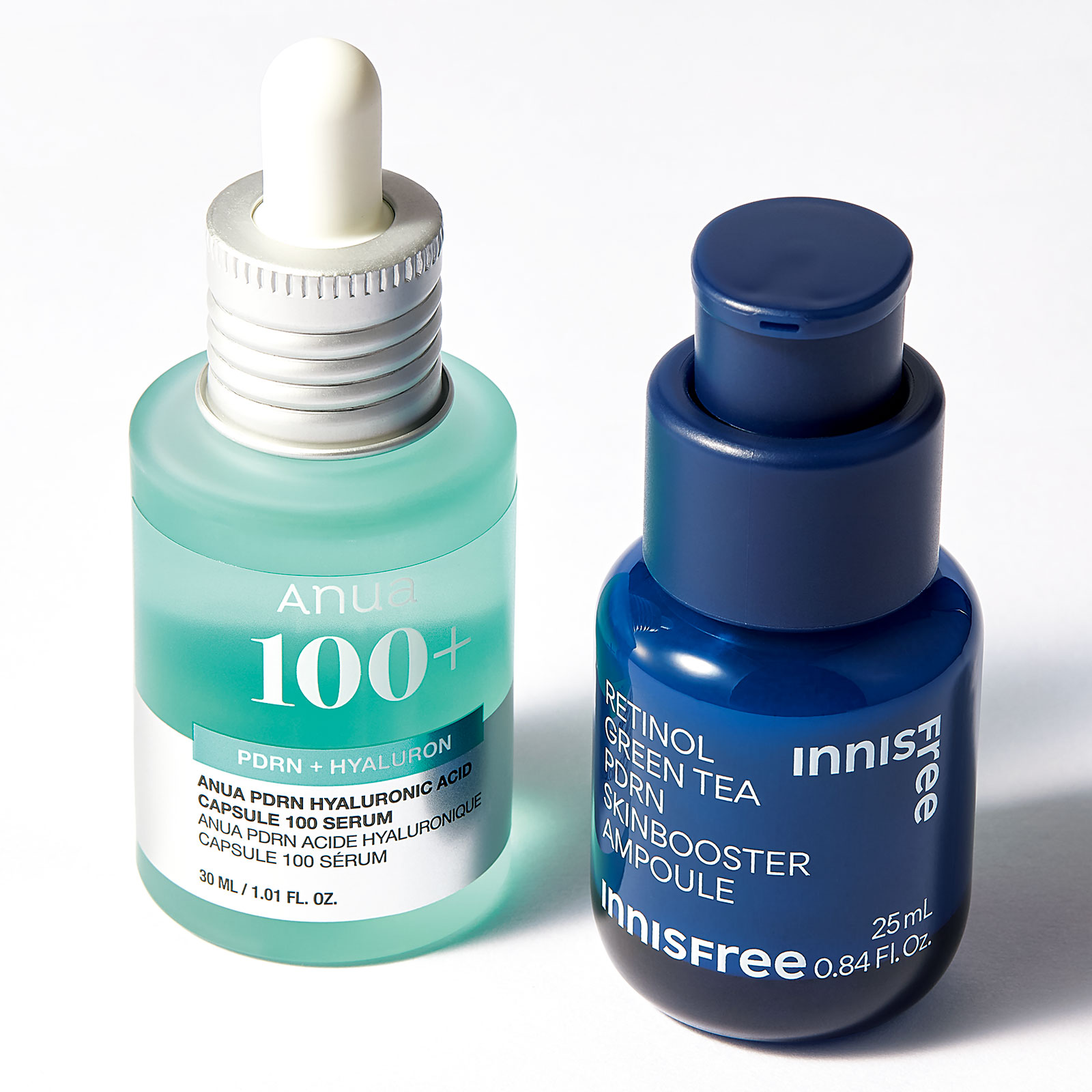 右・レチノールとPDRNがハリのある毛穴レス肌へ。INNISFREE レチノール PDRN アドバンスドセラム ¥4,400(INNISFREE)