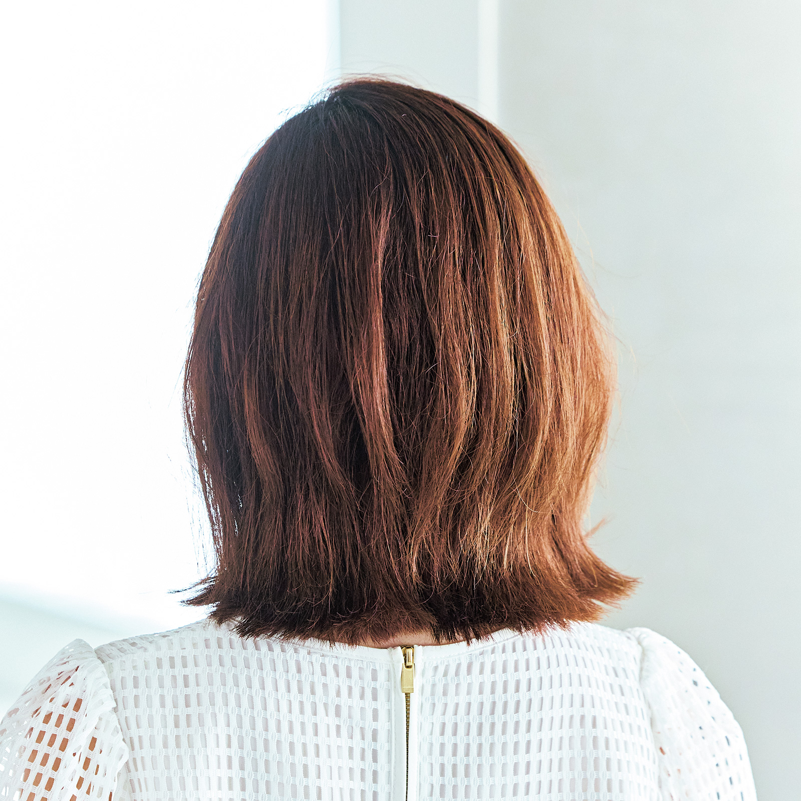 「シンプルなワンレンボブの場合、万能なスタイリング剤としてオイル仕上げが主流ですが、優れものだからと使いすぎは禁物。髪にハリコシがなくなってきた美ST世代は、軽めのタイプを、表面だけでなく内側までなじませることが大切です」