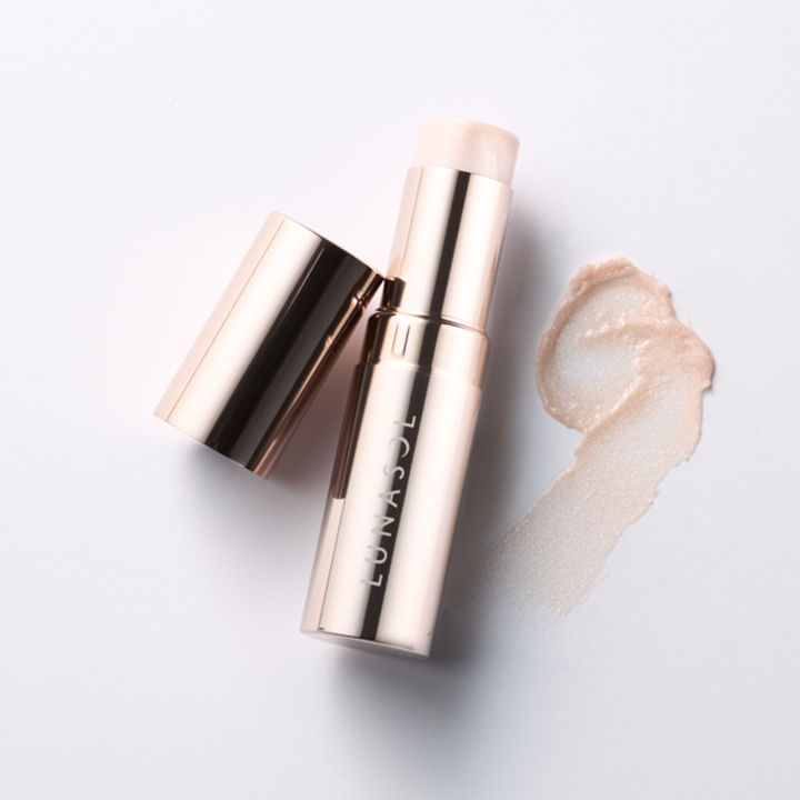 しっとりとした感触で肌にフィットし、オイルのようなツヤを与えるスティックタイプのハイライト。ピンと張った膜が密着し、肌の凹凸をなめらかにカモフラージュしながら立体感ある顔立ちに。ルナソル ラディアントスティックN 02 ¥4,950 (カネボウ化粧品)
