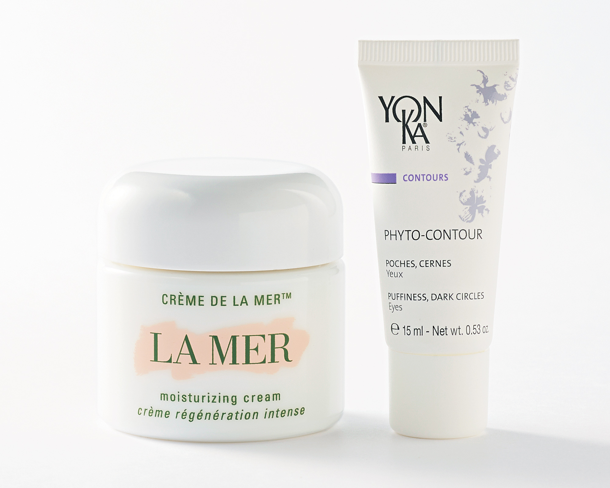 (左)「20年間年中愛用する定番。温めるひと手間で肌にピタッとフィット、潤いを逃しません」クレームドゥ・ラ・メール 60ml ¥56,100(ラ・メール)(右)「エステで香りとケア効果の虜に」 フィト コントゥール 15ml ¥7,700(YON-KA)