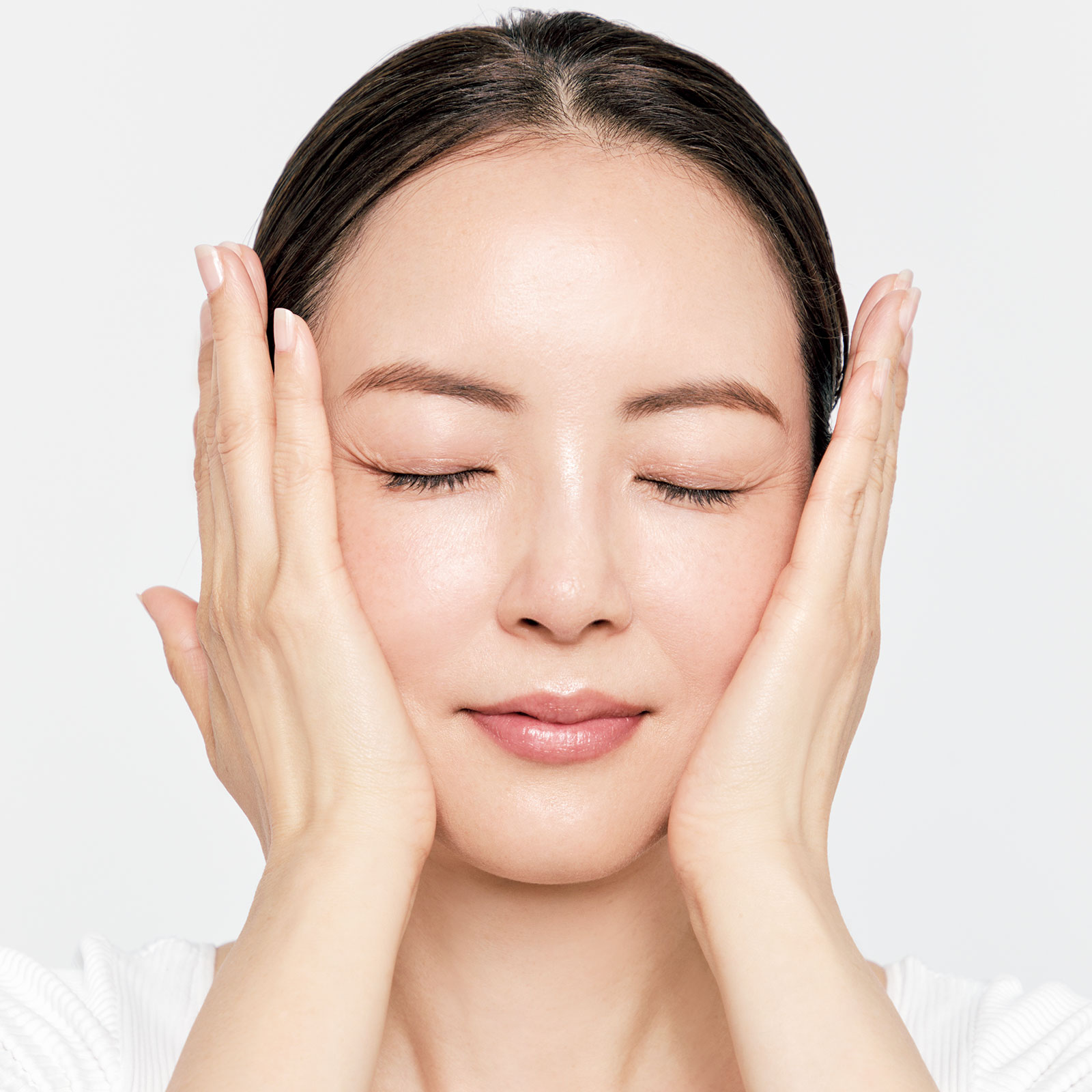 ベースメイクを上滑りすることなく肌に均一にのせるには、ハンドプレスを。しっかり顔全体に馴染ませてから次のスキンケアに移るようにしましょう。