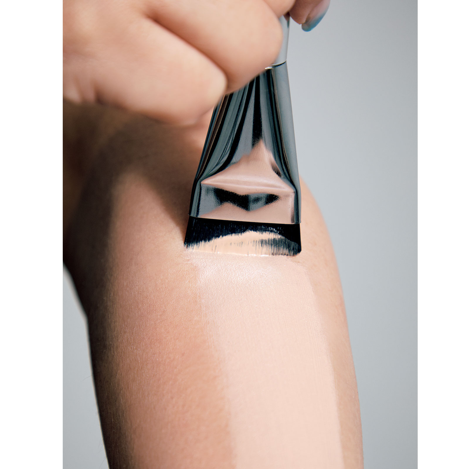 1.横から見たら薄〜く真っ平、幅広の平筆タイプ(スパチュラブラシ)がベスト。液を薄く、均一につけられます。腕に塗ってみたところ、薄膜感を即実感!