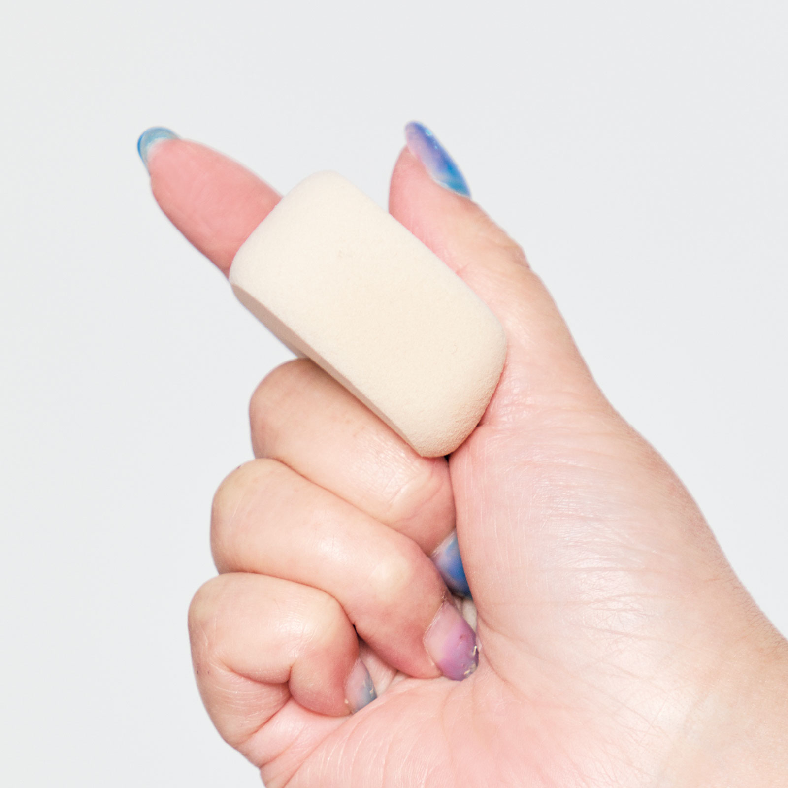 2.細かい部分をタップするべく、スポンジの狭い部分を使えるように縦持ちできる肉厚・小さめが最適。