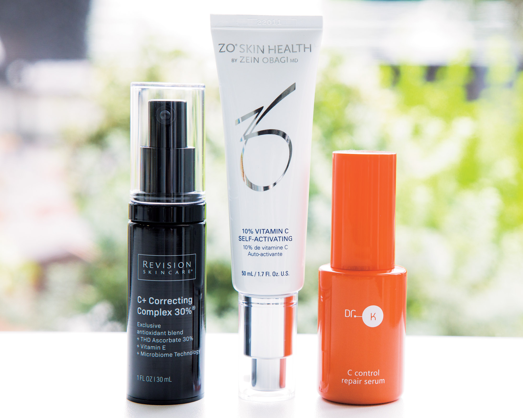 「各種ビタミンCで隙のない透明肌ケアを」(左)C+Correcting Complex 30%TM ¥21,780(リビジョンスキンケア)<公式サイトをチェック> (中)シーセラム 50ml ¥16,280(ゼオスキンヘルス)(右)Cコントロールリペアセラム 30ml ¥9,350(ドクターケイ)<公式サイトをチェック>