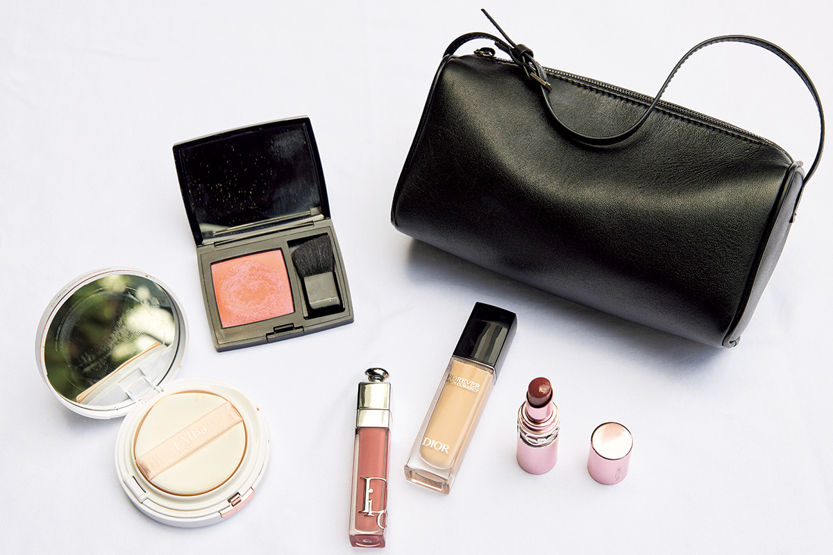 ダルバのウォータフルトーンアップサンクッションは肌色が明るくなる化粧下地UVクッション。軽い密着感と水分量でノンストレスなつけ心地です。イヴ・サンローランのラブシャイン キャンディ グロウ バーム6Bはツヤがあるのにべたつかず暑い時期も使いやすいのでポーチにイン。
